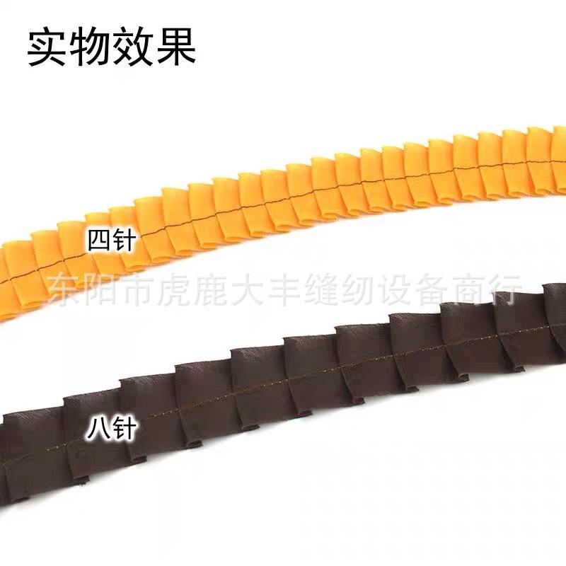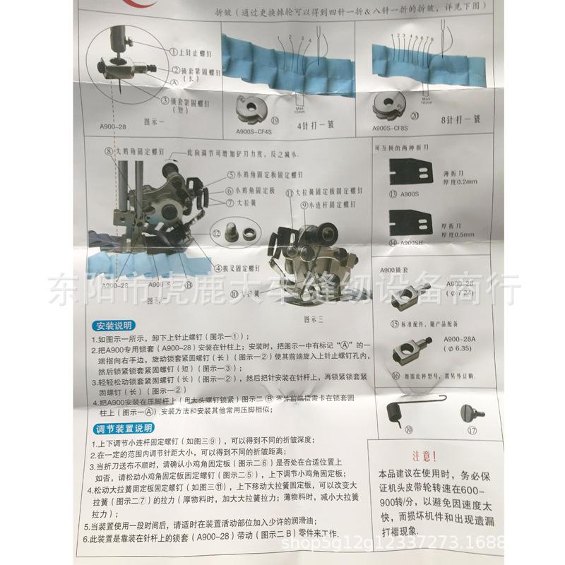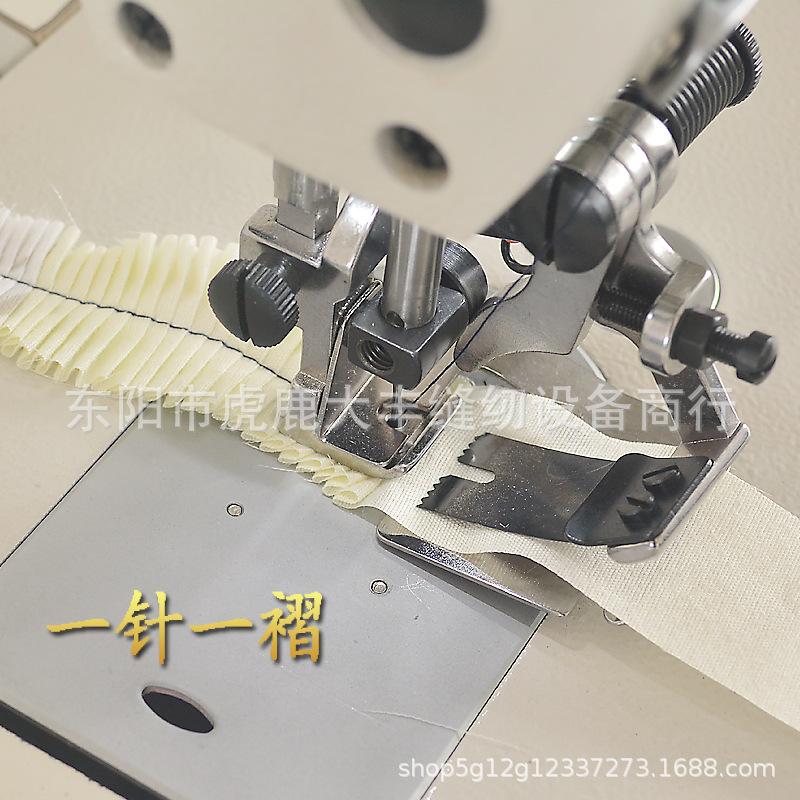 Acessórios para máquinas de costura industriais, dispositivo de pregas, calcador de pregas de carro plano, dispositivo de pregas de uma prega de quatro agulhas e oito agulhas. Adequado para carros planos de agulha única de máquinas de costura industriais de várias marcas. A barra da agulha cai 4 vezes para produzir uma ruga, ou a barra da agulha cai 8 vezes para produzir uma ruga. A distância entre as rugas e as rugas é ajustada na máquina de costura.