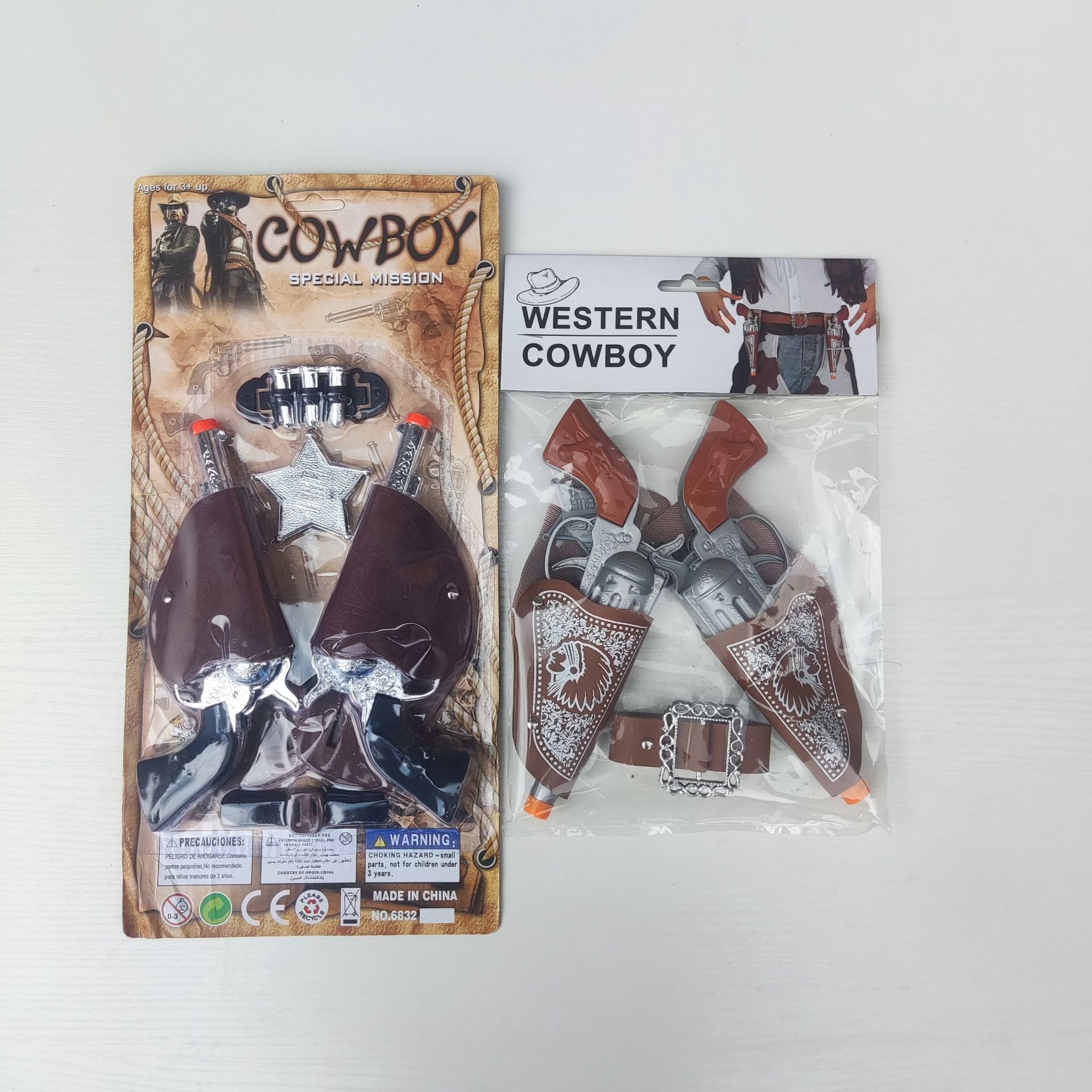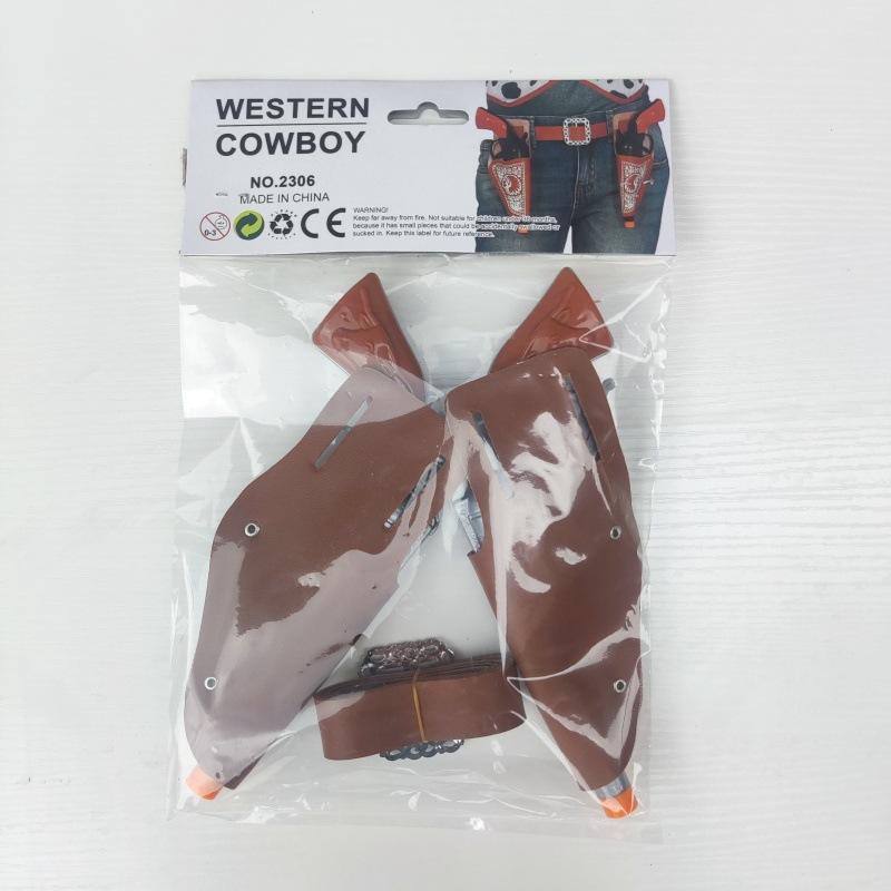 Compre Conjunto de arma dupla de Halloween para crianças, revólver de brinquedo de cowboy ocidental masculino com estojo de couro, vestido de cowboy ocidental no atacado no Joom.pro