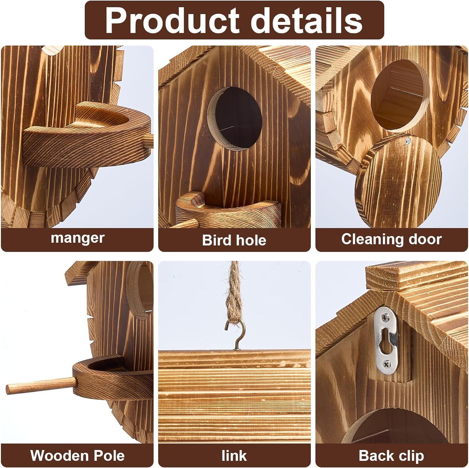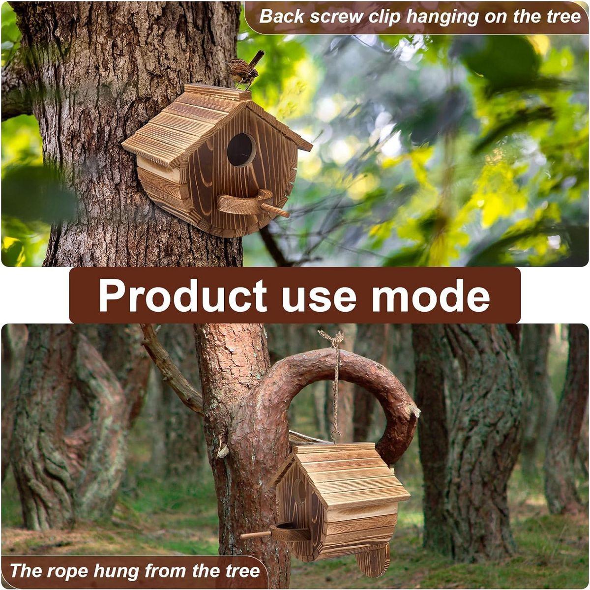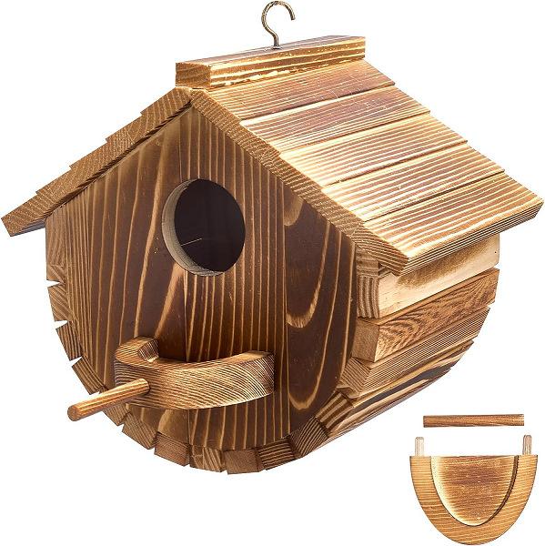 Ninho de pássaro de madeira alimentador de pássaros pendurado gaiola de pássaros semicircular clássica casa de pássaros de jardim ao ar livre capa de vento e chuva ninho de pássaro