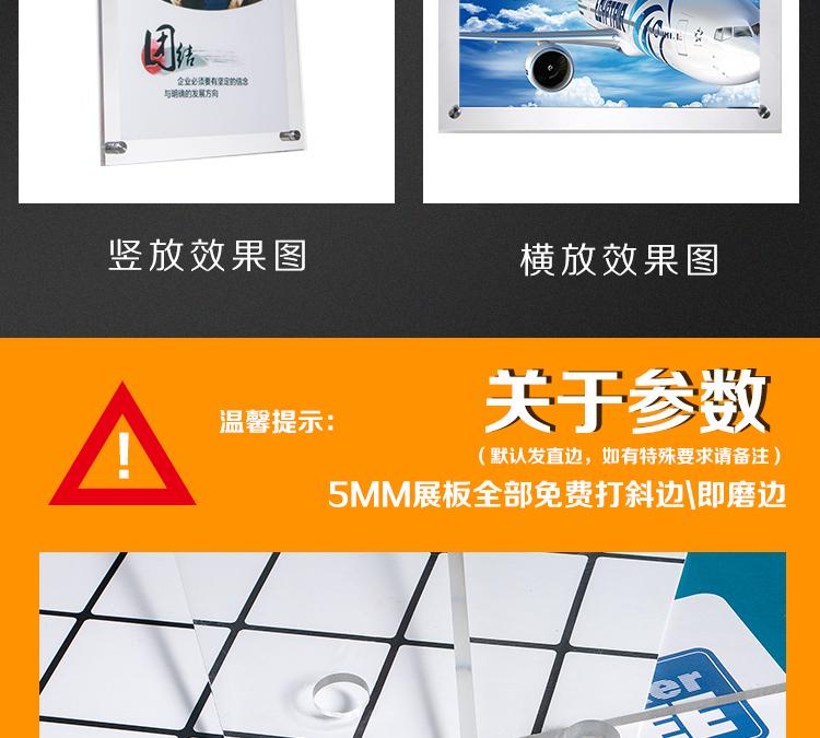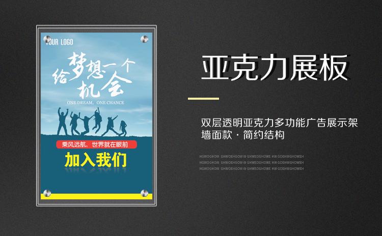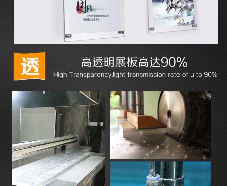 Placa de exibição de acrílico transparente placa de exibição de publicidade personalizada madeira compensada de camada dupla montado na parede sistema de vidro orgânico cartaz pintura