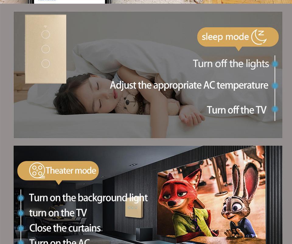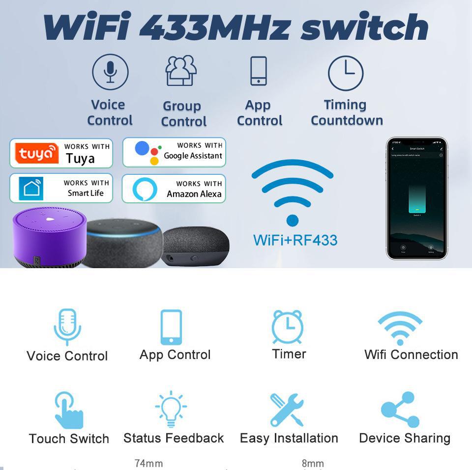 Interruptor de painel de toque inteligente Tuya Wi-Fi+RF433