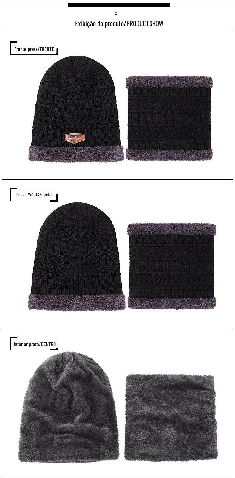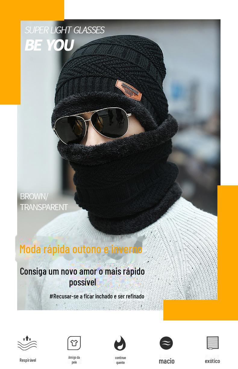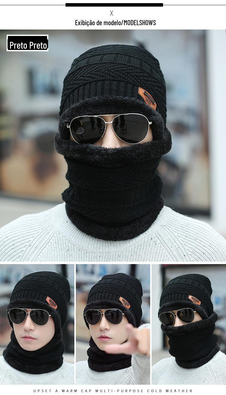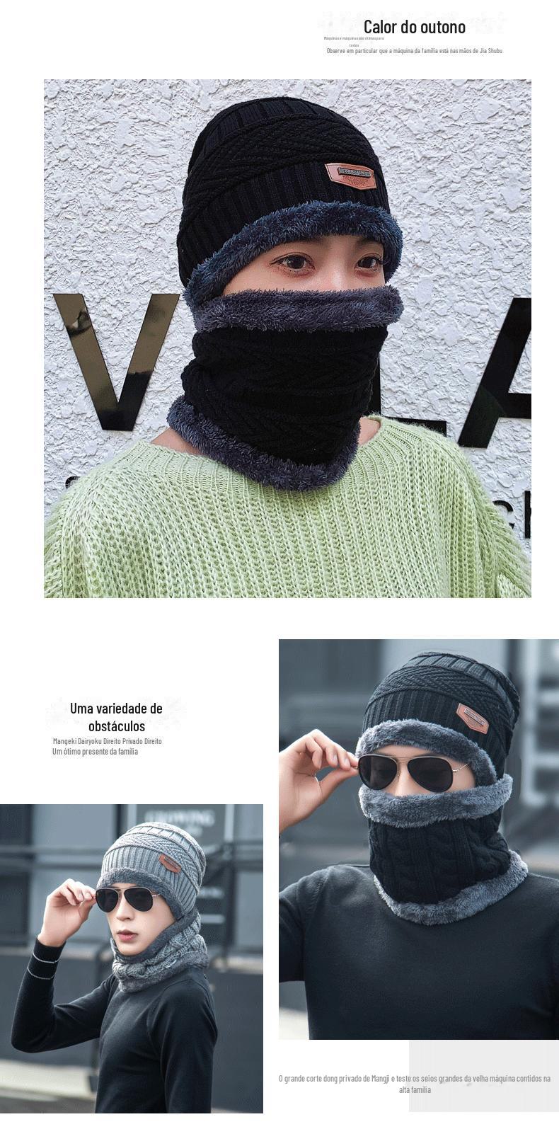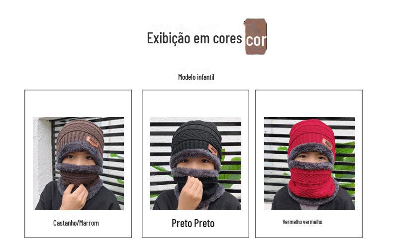 Gorro de malha de inverno masculino com forro de lã cachecol quente integrado chapéu de lã espessada chapéu feminino proteção auricular chapéu à prova de frio para pais e filhos