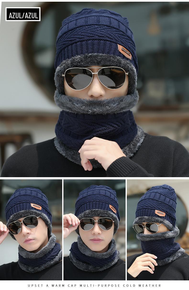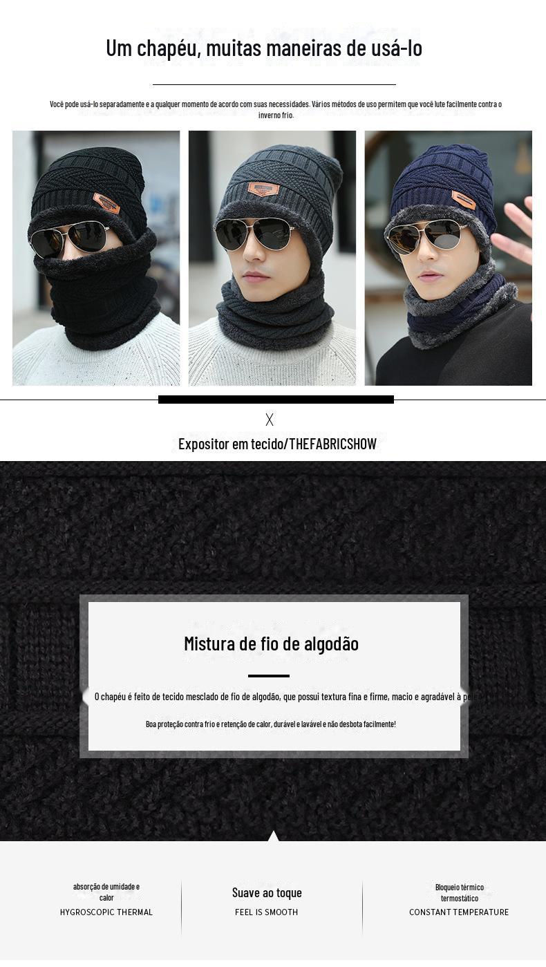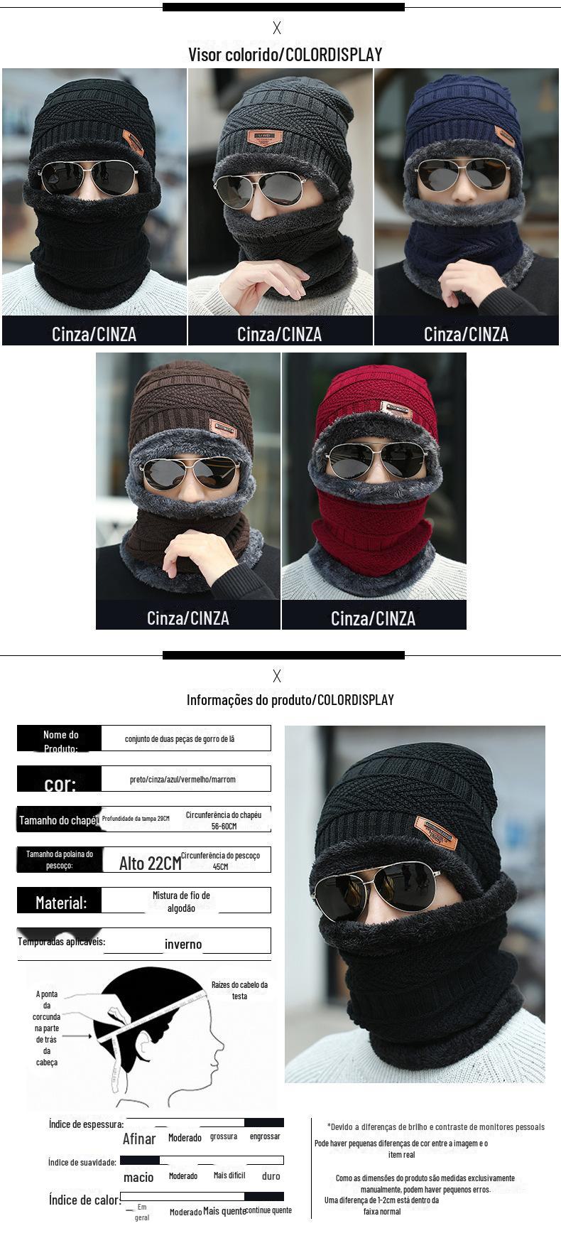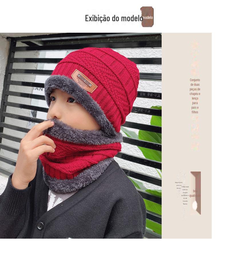 Gorro de malha de inverno masculino com forro de lã cachecol quente integrado chapéu de lã espessada chapéu feminino proteção auricular chapéu à prova de frio para pais e filhos