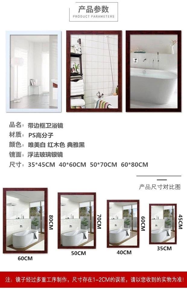 Espelho de banheiro simples Espelho de maquiagem Espelho de banheiro de banheiro Espelho de cômoda de dormitório Espelho de banheiro montado na parede emoldurado