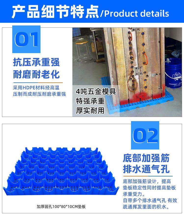 Placa à prova de umidade espessada Placa de plástico Emenda de paletes de piso Almofada de armazenamento congelado Placa de almofada de logística de armazém Placa à prova de umidade de carga de armazém