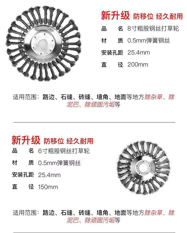 Cortador de grama cortador de grama capina roda de capina de fio de aço de 8 polegadas Ferramentas de jardim de 6 polegadas acessórios de cortador de grama fio torcido tipo disco de fio de aço