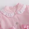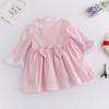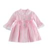 Roupas infantis Primavera e Outono nova saia infantil laço manga flare princesa saia arco rosa vestido casaco ins cross-border