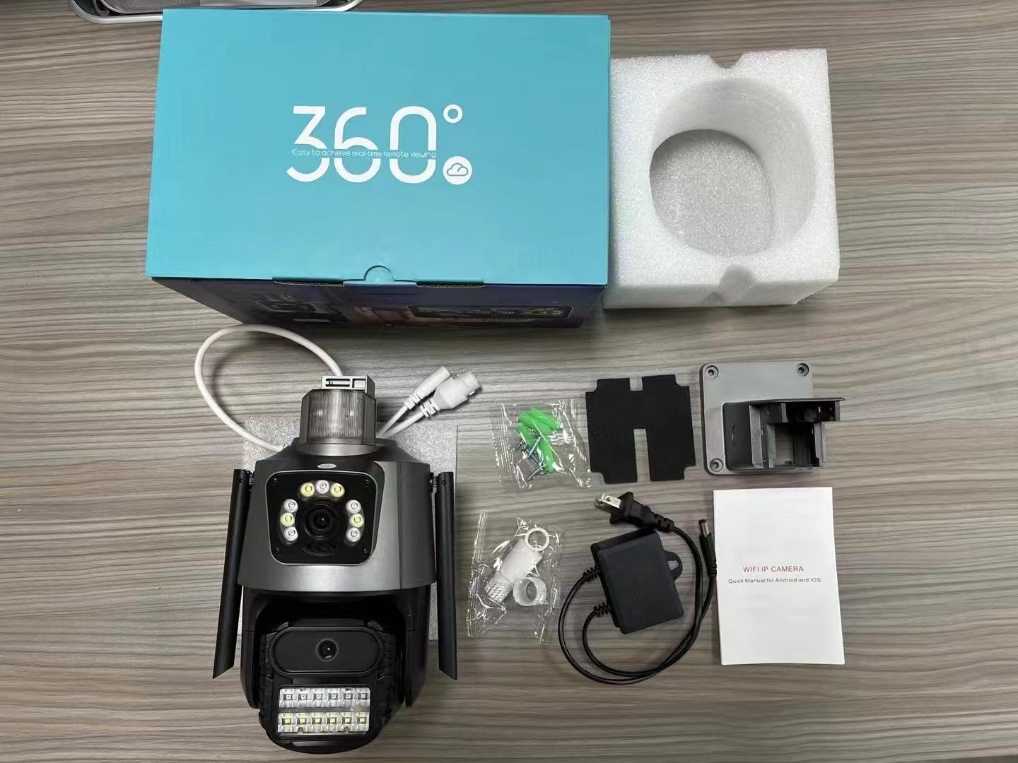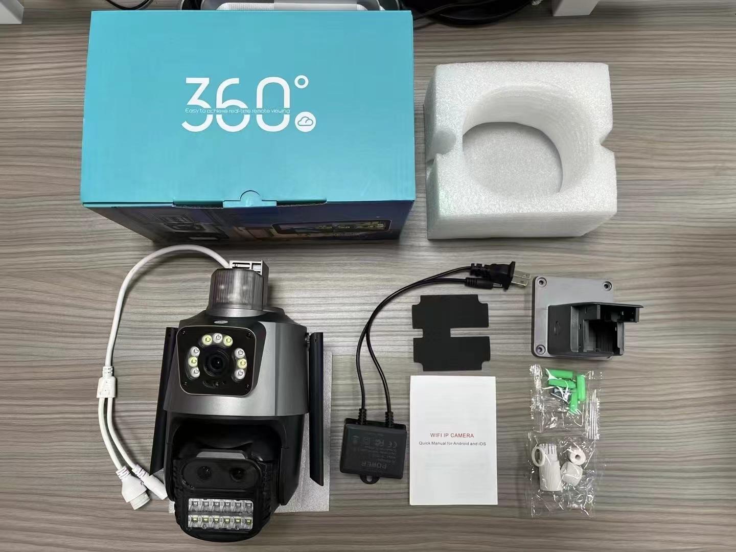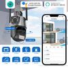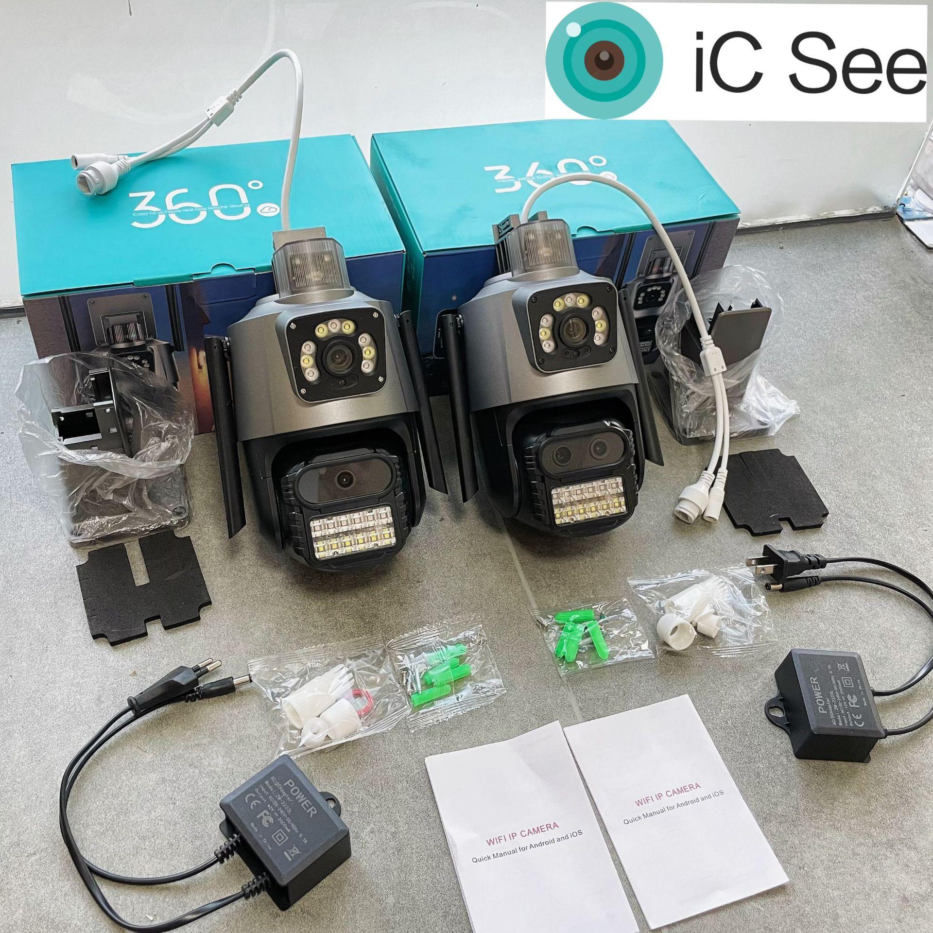 Câmera de vigilância WiFi com enlace binocular transfronteiriço IcseeP11, câmera de rede sem fio com tela dupla e lente dupla