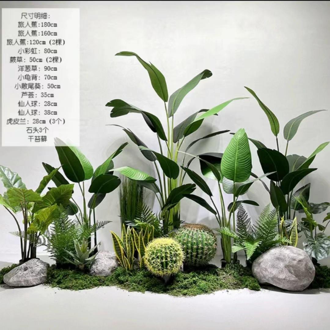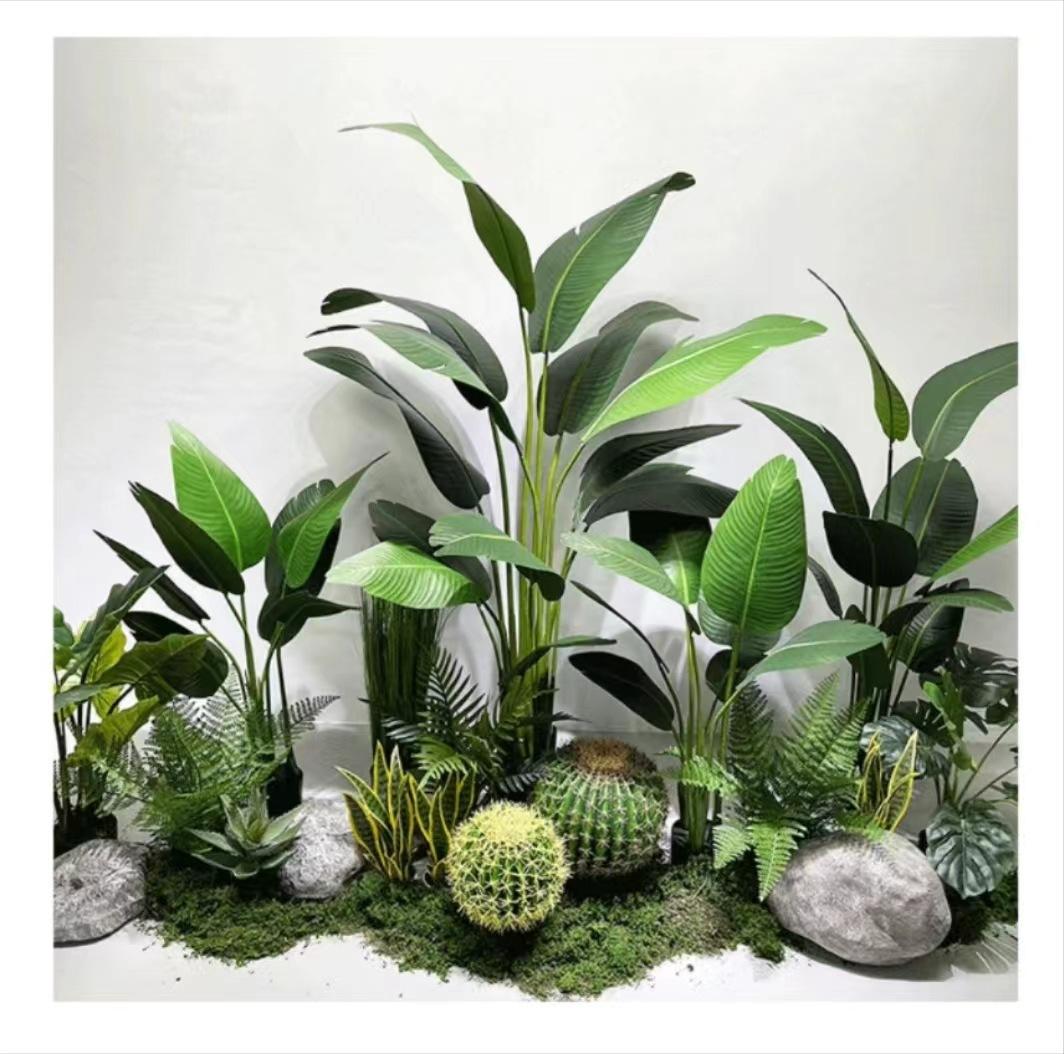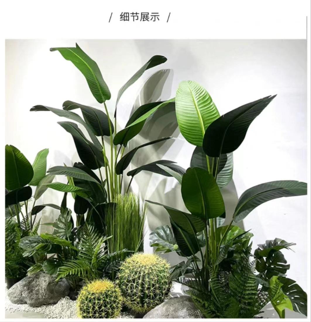 Compre Arranjo de paisagem de planta de simulação nórdica Grande paisagem verde falso plantando viajante banana em vaso decoração de janela de shopping center interno no atacado no Joom.pro
