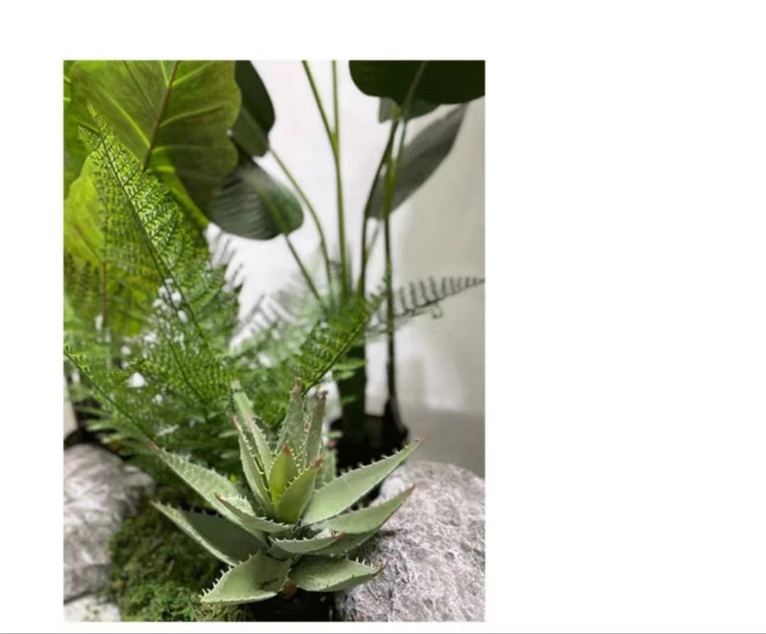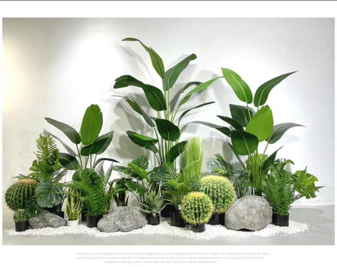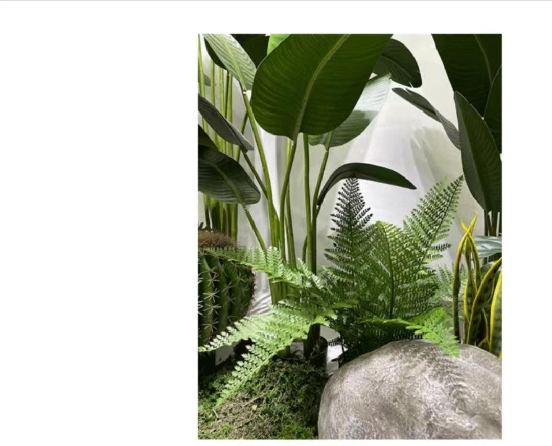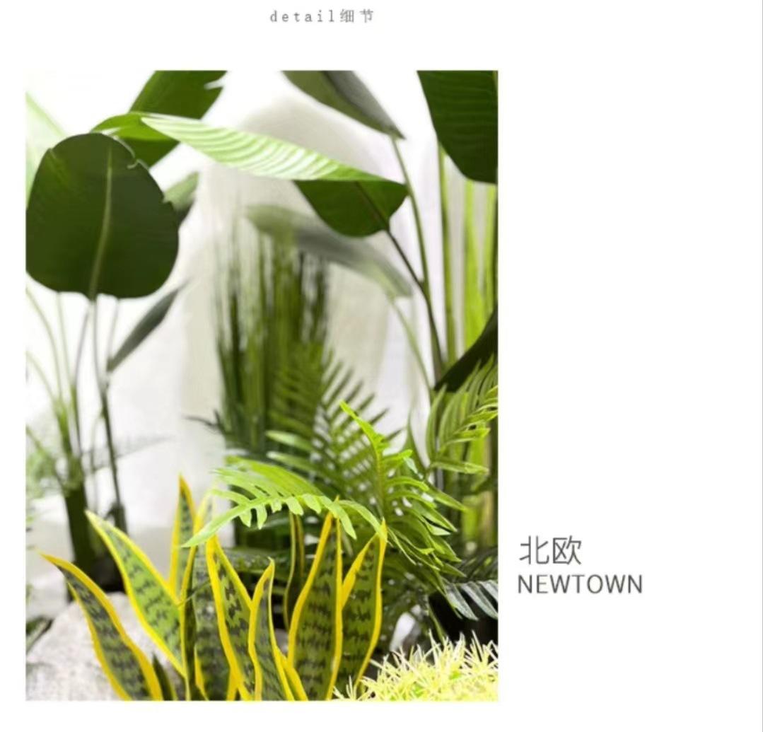 Compre Arranjo de paisagem de planta de simulação nórdica Grande paisagem verde falso plantando viajante banana em vaso decoração de janela de shopping center interno no atacado no Joom.pro