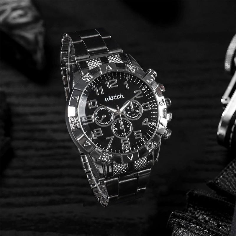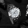 Comércio exterior transfronteiriço dos homens grande mostrador de três olhos pulseira de aço relógios de negócios de vidro azul quartzo fabricantes atacado