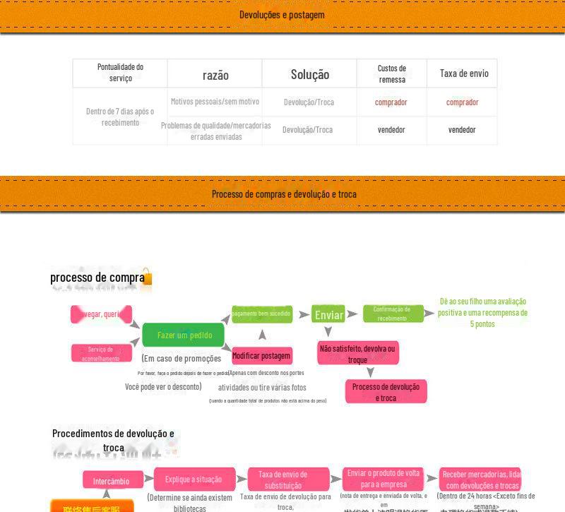 O lucro no atacado é baixo. Não importa qual seja o motivo da devolução ou troca (incluindo problemas de qualidade), a postagem de devolução e troca será paga pelo comprador. Para devolução e reembolso, apenas o valor do reembolso será devolvido, não a postagem. Para clientes cooperativos de longo prazo, os produtos com problemas de qualidade podem ser armazenados até que tenham mais de 6 kg e enviados por logística privada para devolução. Entre em contato com o atendimento ao cliente antes de devolver. Não aceitaremos devoluções privadas.