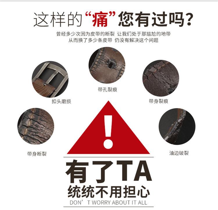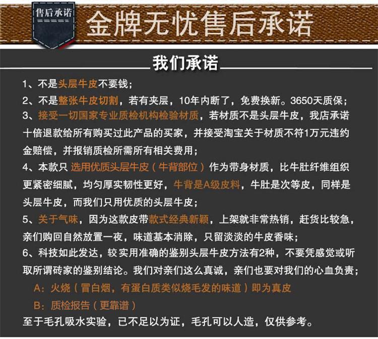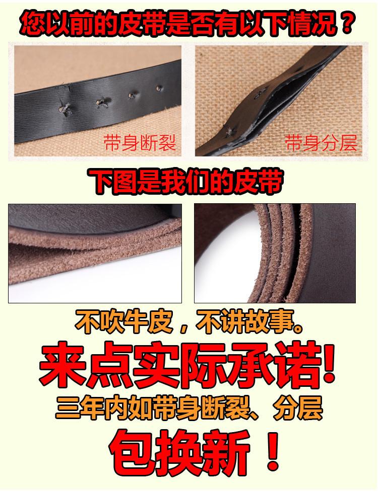 3. Lembrete especial: cintos são produtos especiais e têm mais probabilidade de ter "defeitos" do que roupas e sapatos. Do crescimento do gado... ao mercado de couro de vaca... e finalmente às nossas mãos e depois às suas mãos... Existem muitos elos, e defeitos são inevitáveis em todos os elos. Primeiro de tudo, o gado não sabe como cuidar da pele, e mesmo que usemos N camadas de produtos para a pele todos os dias, ainda não podemos evitar poros grandes, rugas e manchas... E o gado? É inevitável que o cinto seja arranhado e esfregado em tantos elos, mas isso não afetará o uso. Couro genuíno raramente quebra. Não venderemos defeitos muito óbvios, encurtaremos para fazer passadores de cinto. Mas se você realmente gosta de olhar para os problemas com uma lupa, então é melhor gastar um preço alto para comprar uma grande marca. Compradores que são exigentes, perfeccionistas e exigentes não são bem-vindos.
