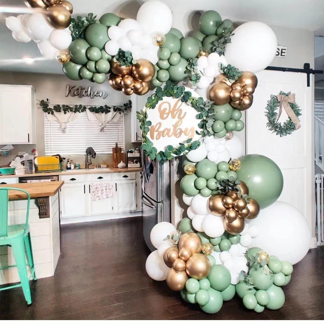 Novo pacote de corrente de balão verde ervilha retrô transfronteiriço layout de cena de festa de aniversário balão decorativo celebração de feriado