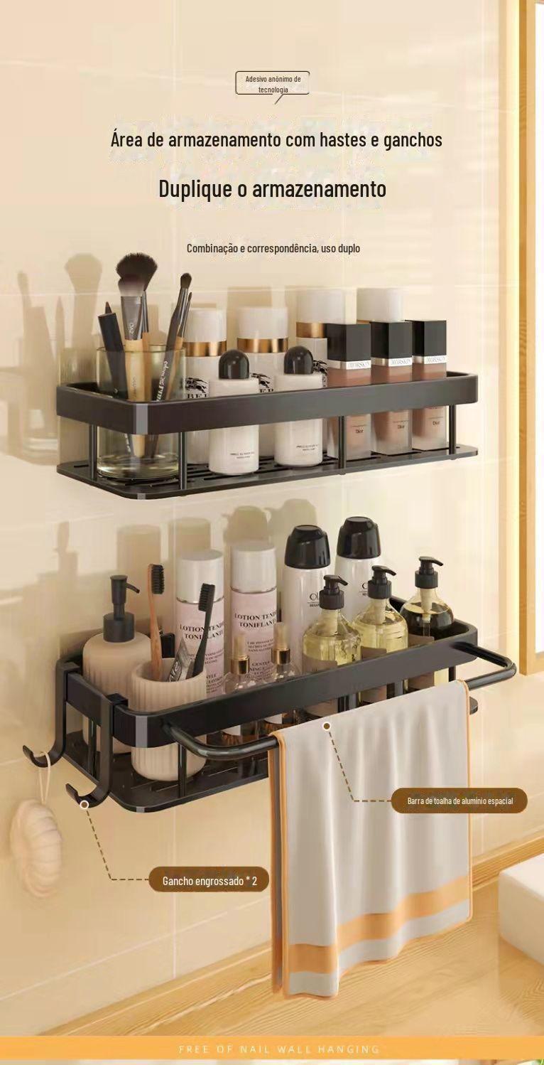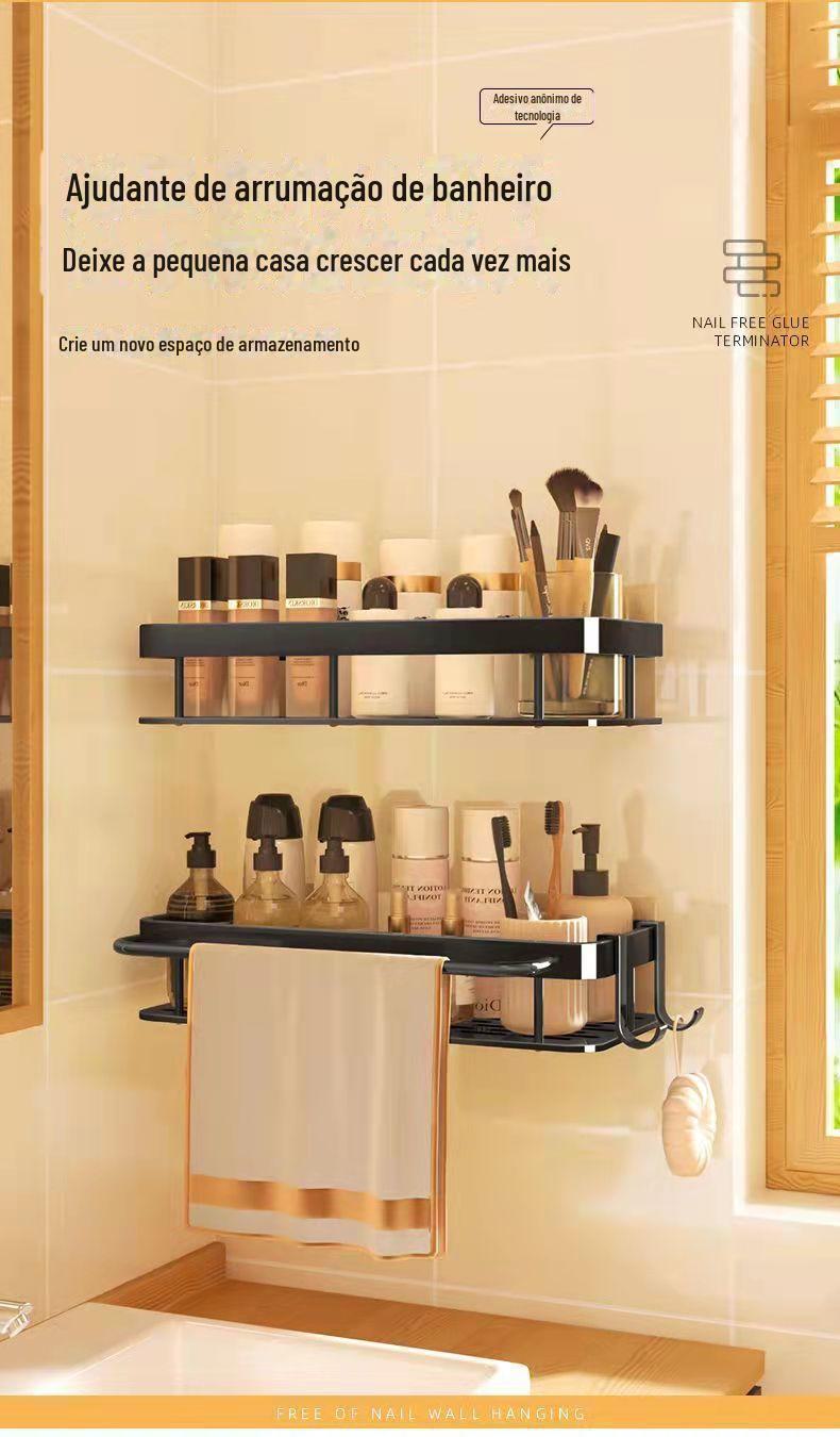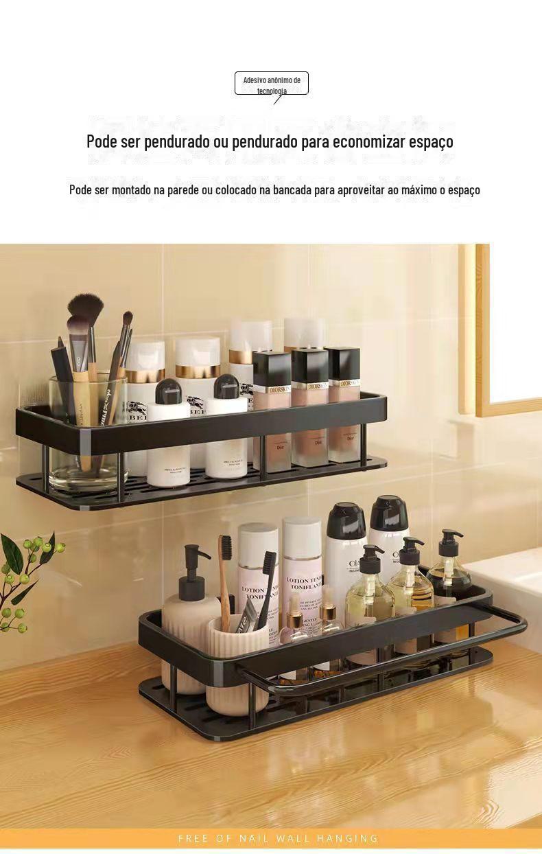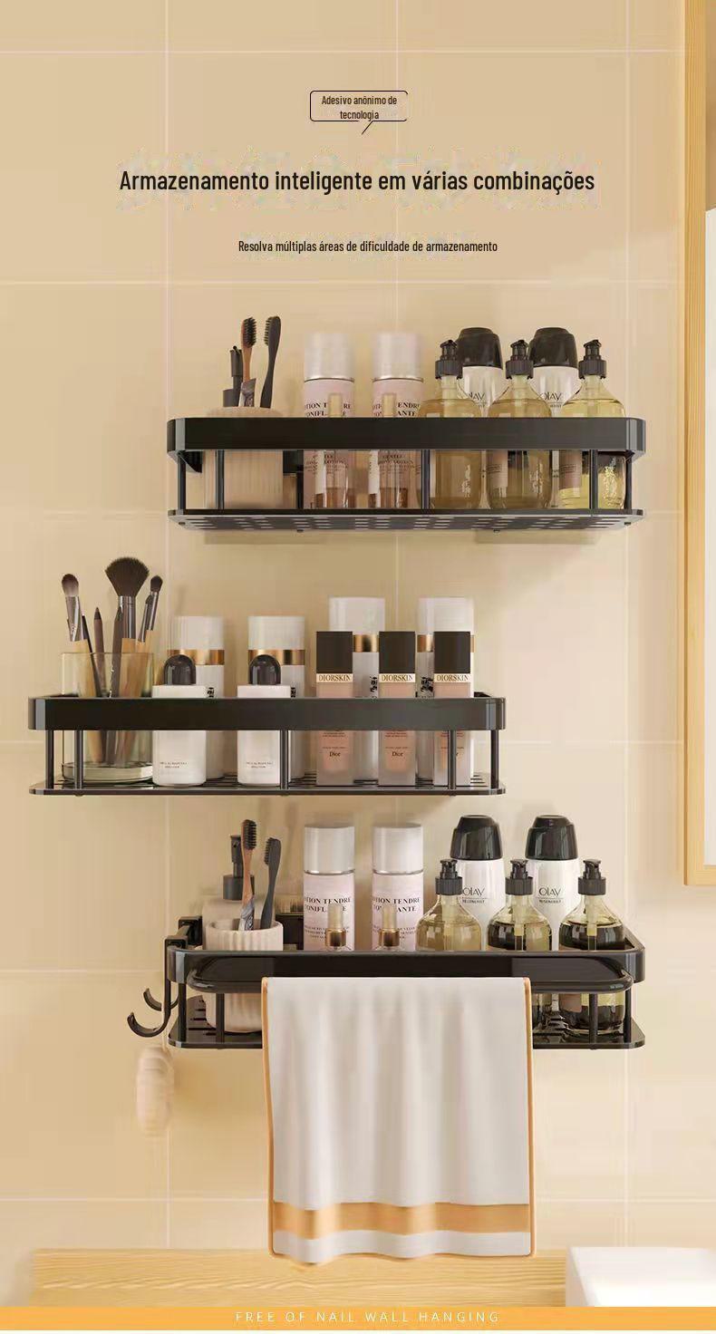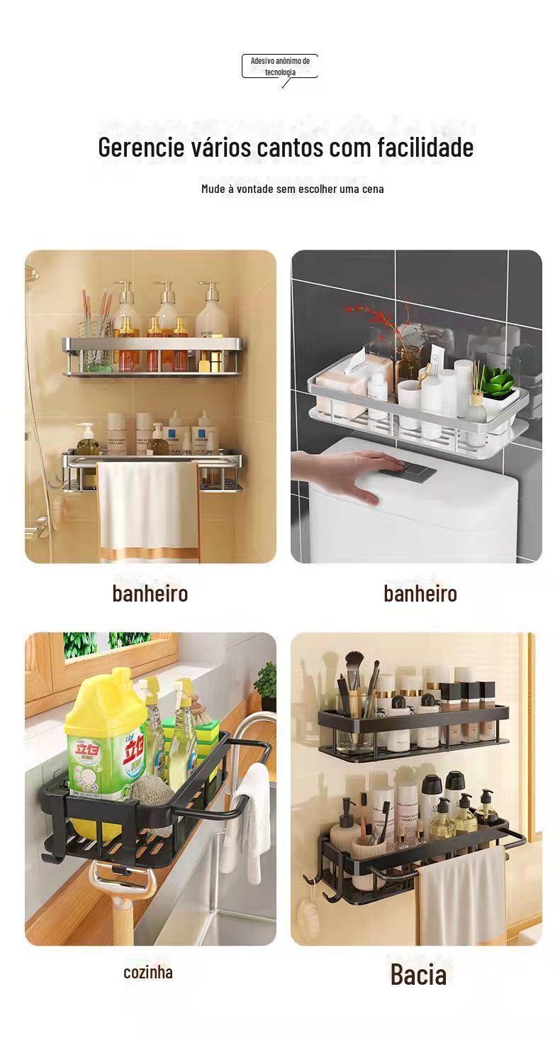 Prateleira de armazenamento de cozinha Jujiajia, pia, banheiro sem perfuração, armazenamento de parede, artefato, suprimentos de banho, armazenamento