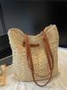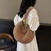 Bolsa de Palha Retrô de Verão, Bolsa de Ombro Fashion e Versátil de Grande Capacidade, Bolsa de Mão para Férias na Praia, Tendência Tecida Retrô