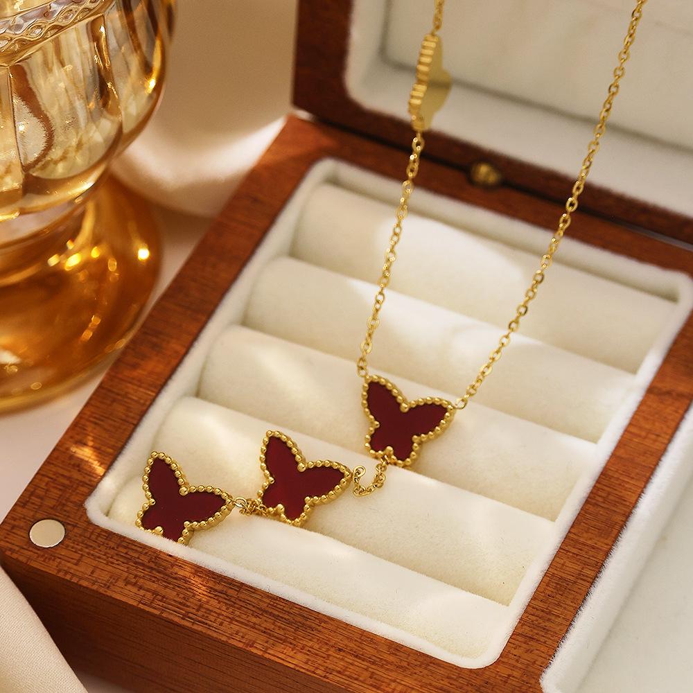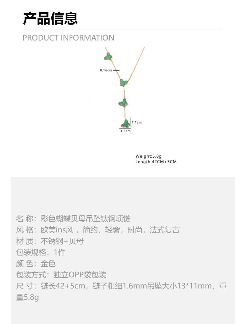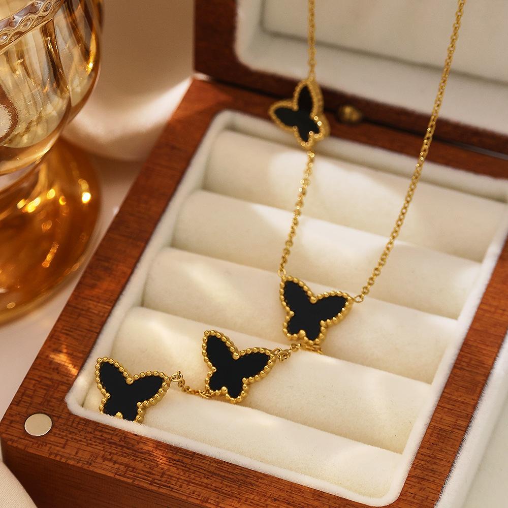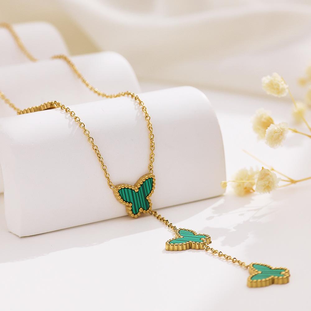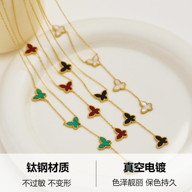 Corrente de Suéter de Aço Inoxidável Estilo Ins Europeu e Americano Banhado a Ouro 18K Corrente Clavicular de Madrepérola Pingente de Borboleta Francês Colar de Aço Titânio