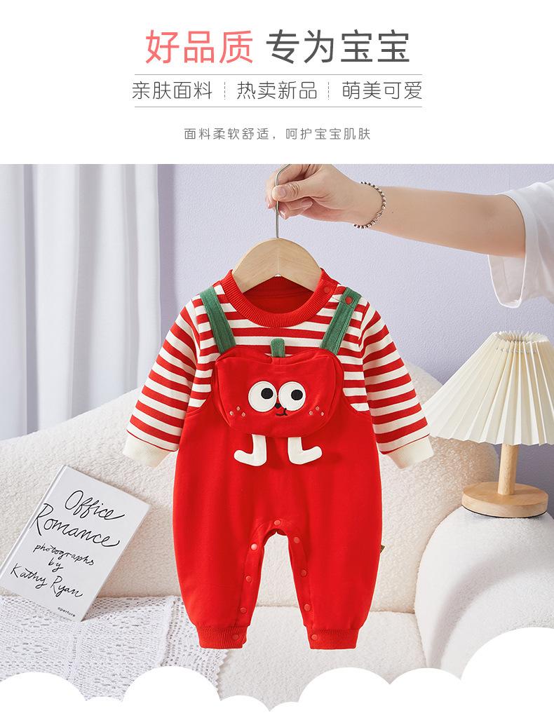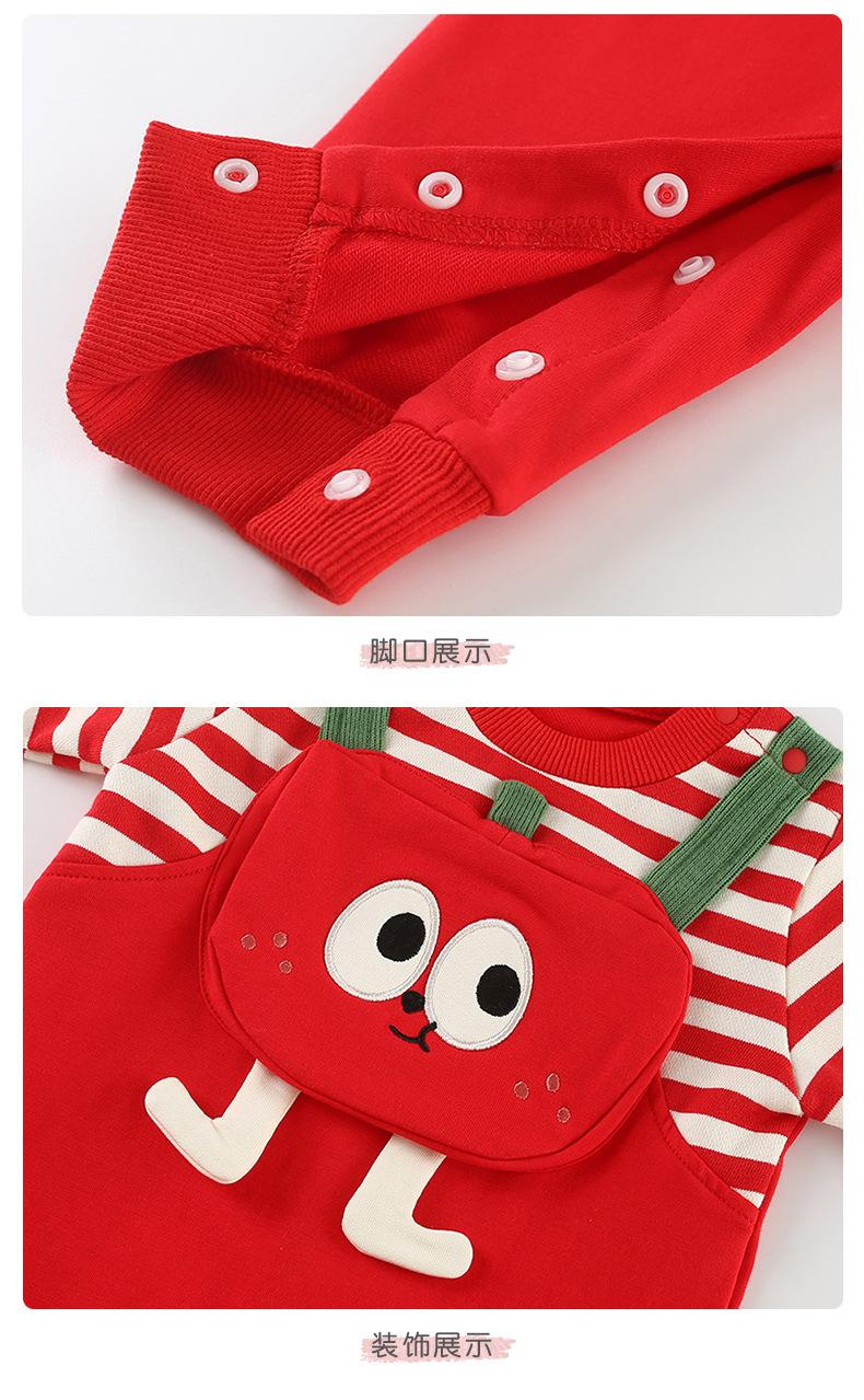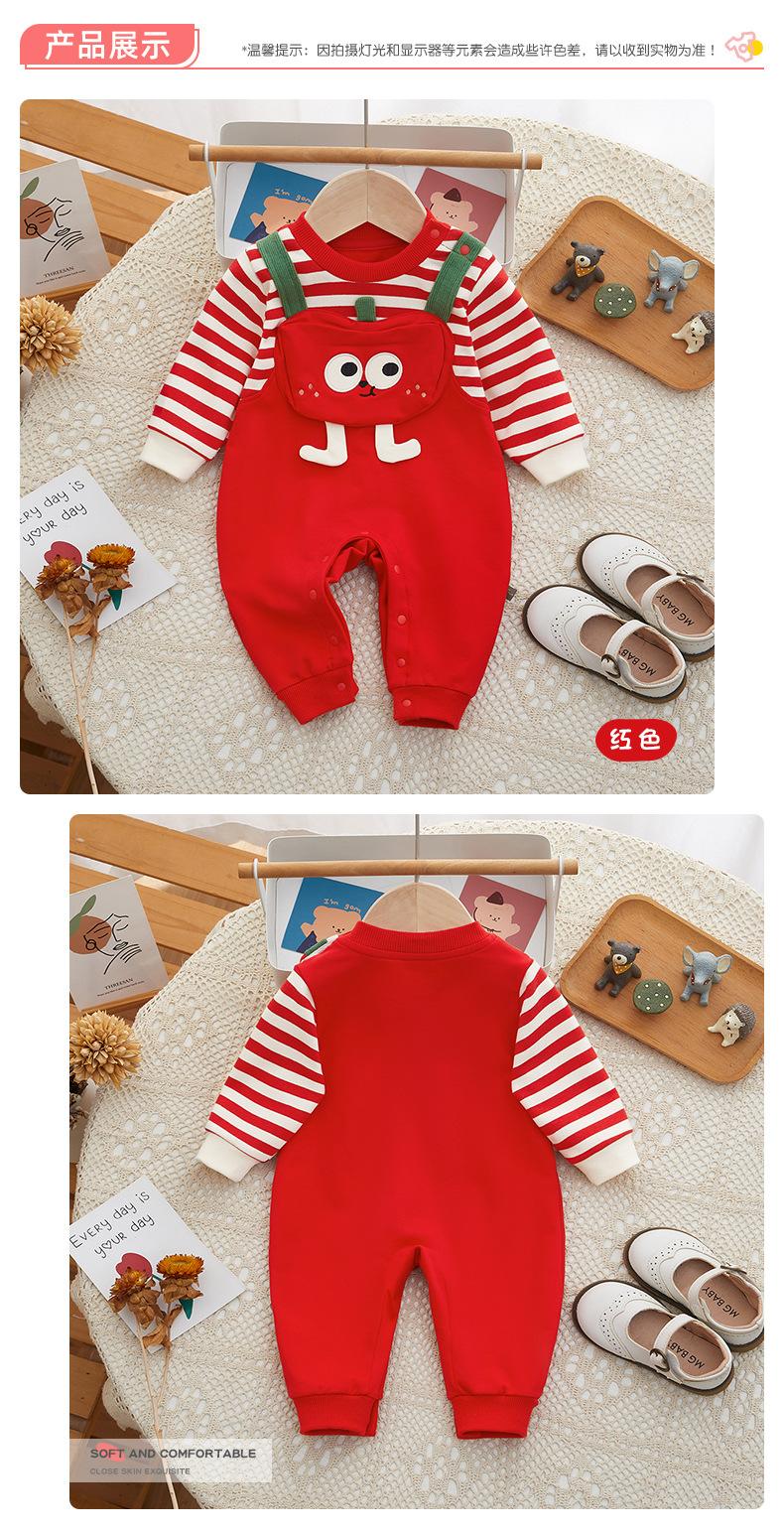 Roupa de Bebê Primavera Macacão Listrado Vermelho Fruta Roupa de Recém-Nascido Roupa de Outono para Bebê Macacão de Bebê