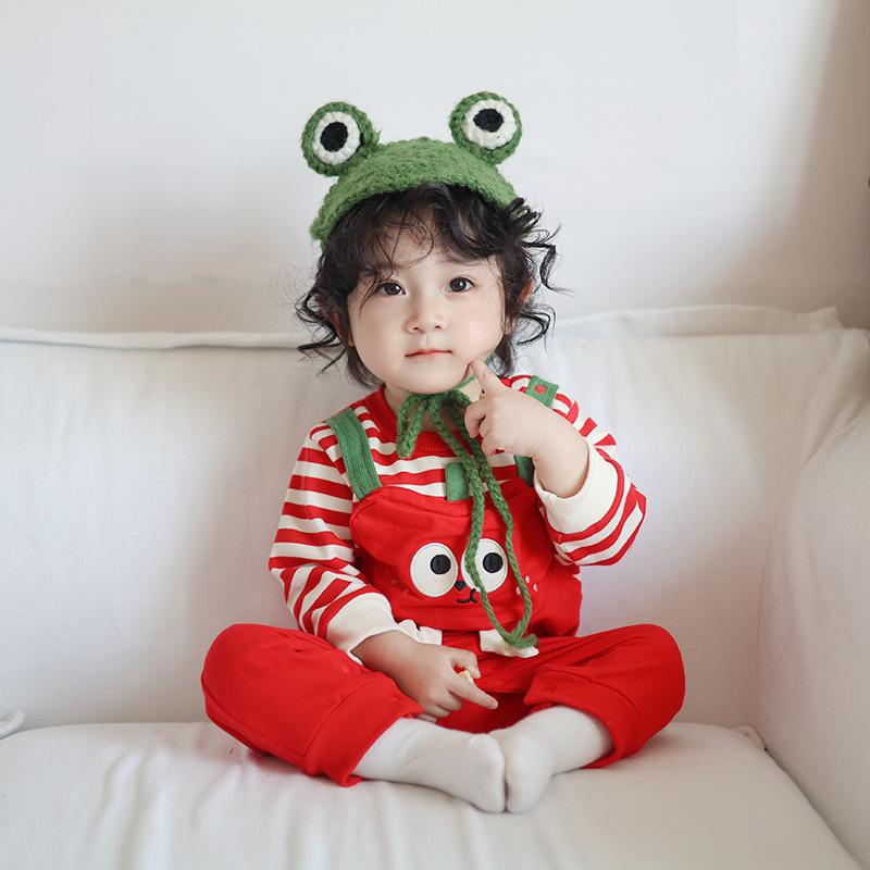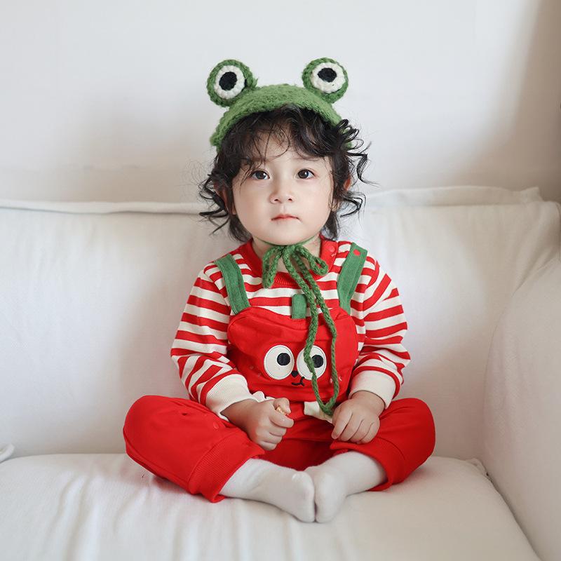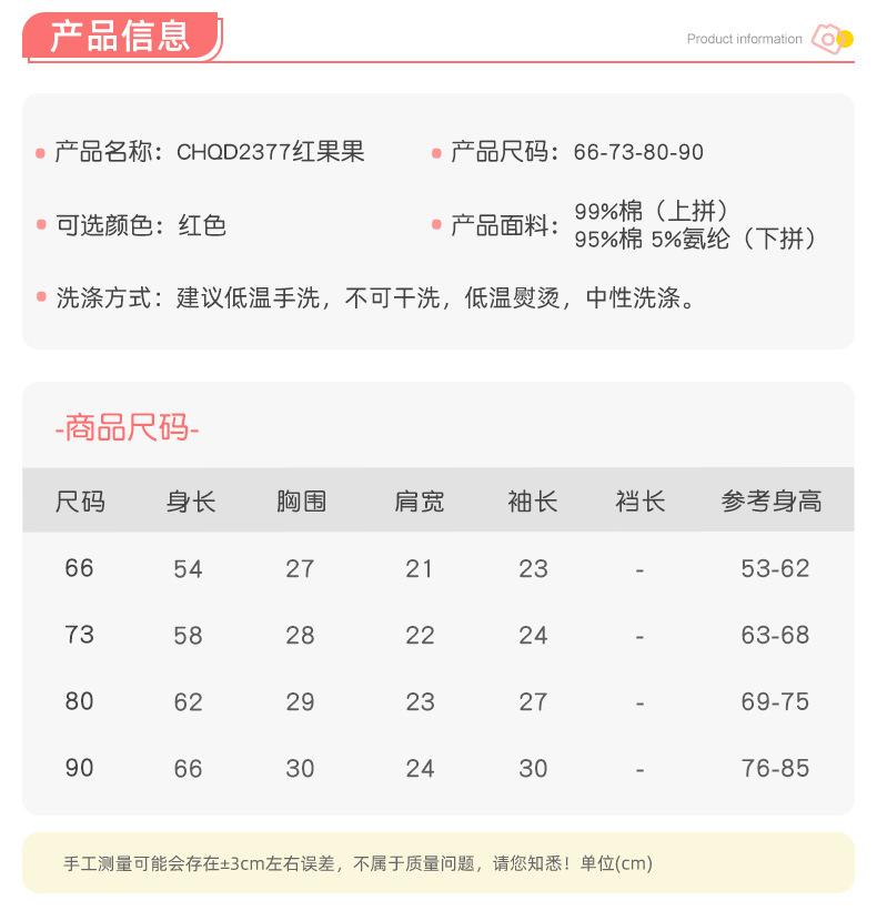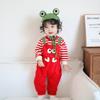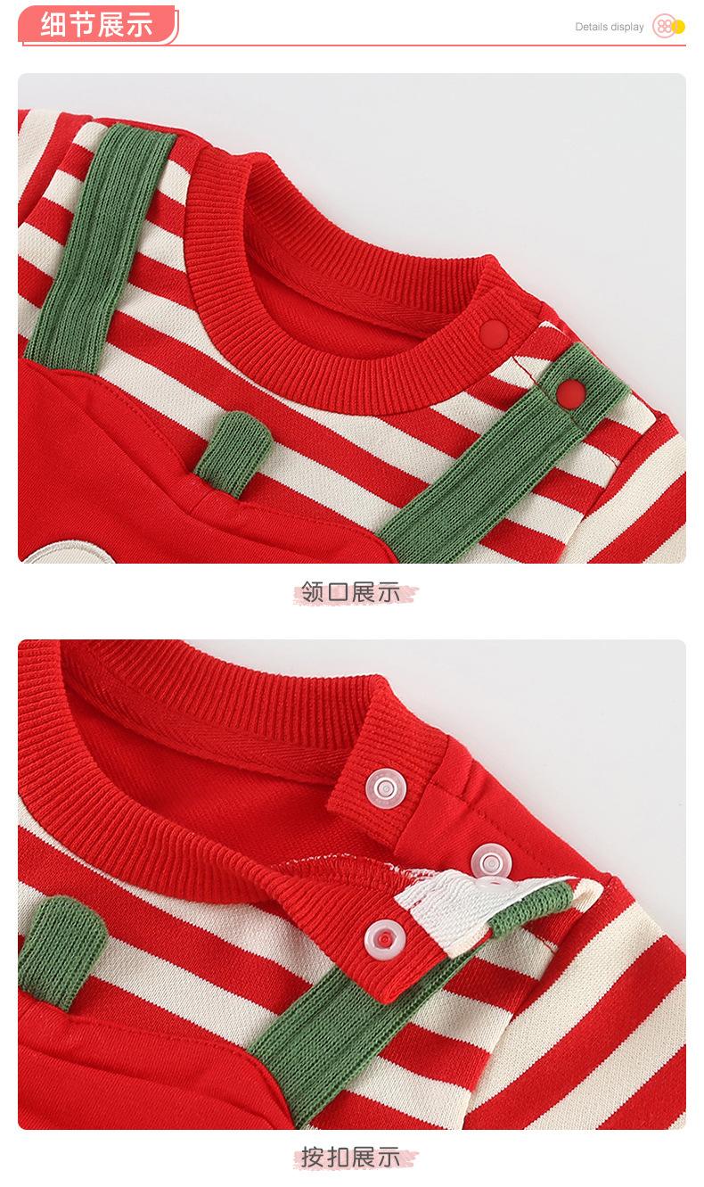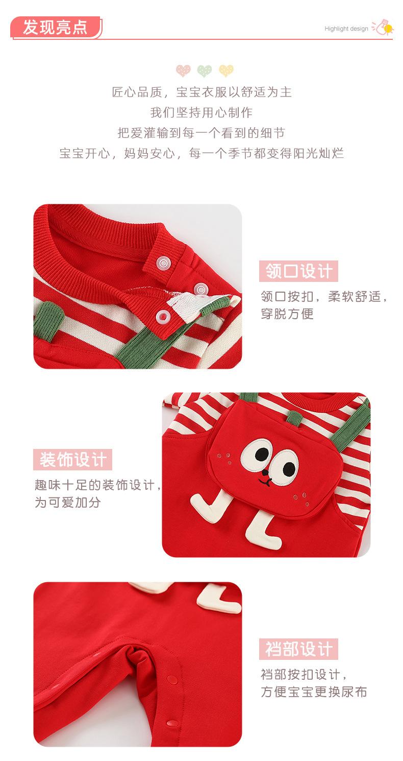 Roupa de Bebê Primavera Macacão Listrado Vermelho Fruta Roupa de Recém-Nascido Roupa de Outono para Bebê Macacão de Bebê