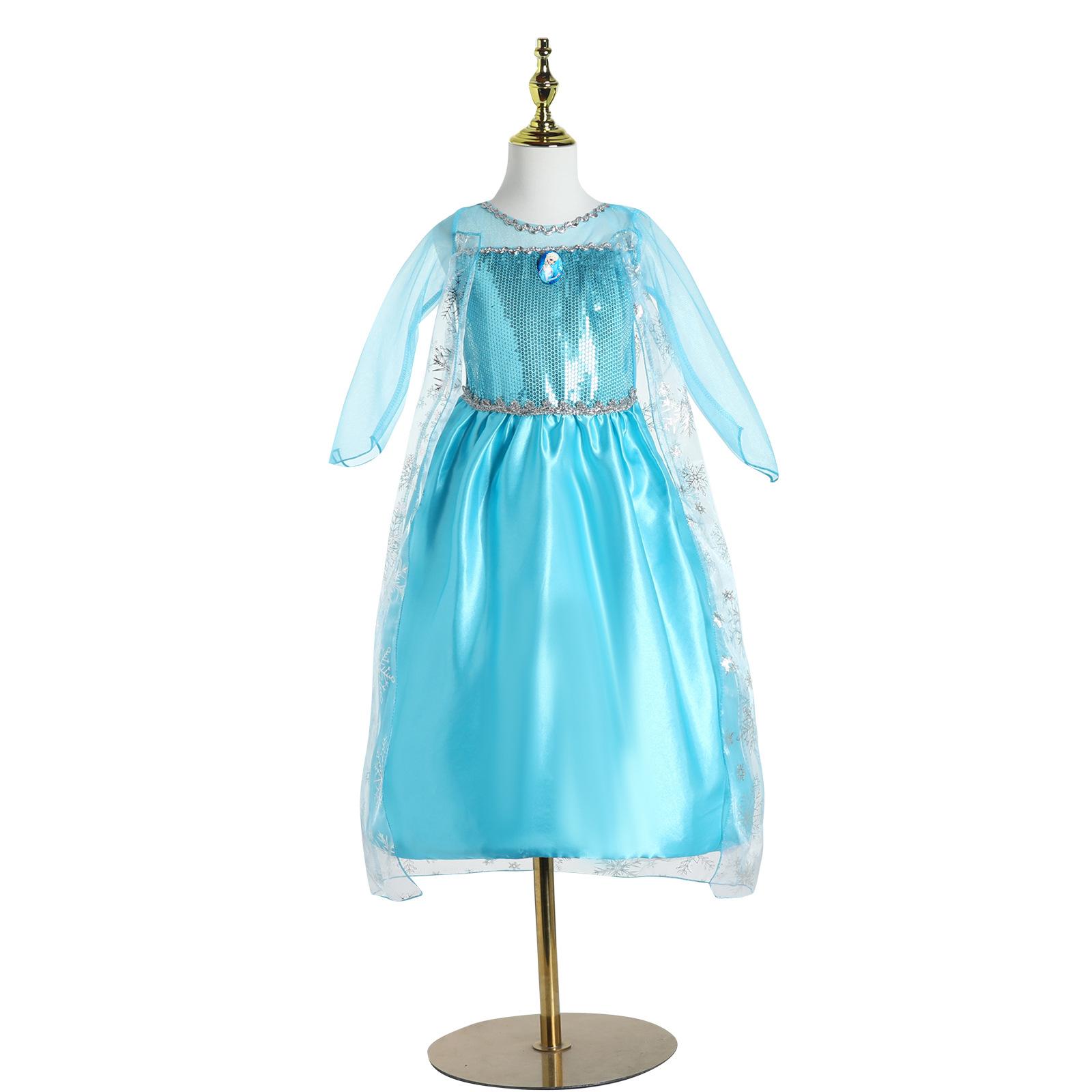 Frozen Aisha Elsa Princesa Vestido Lantejoulas Manga Longa Cinto Capa Performance Vestido Vestido de Festa cosplay