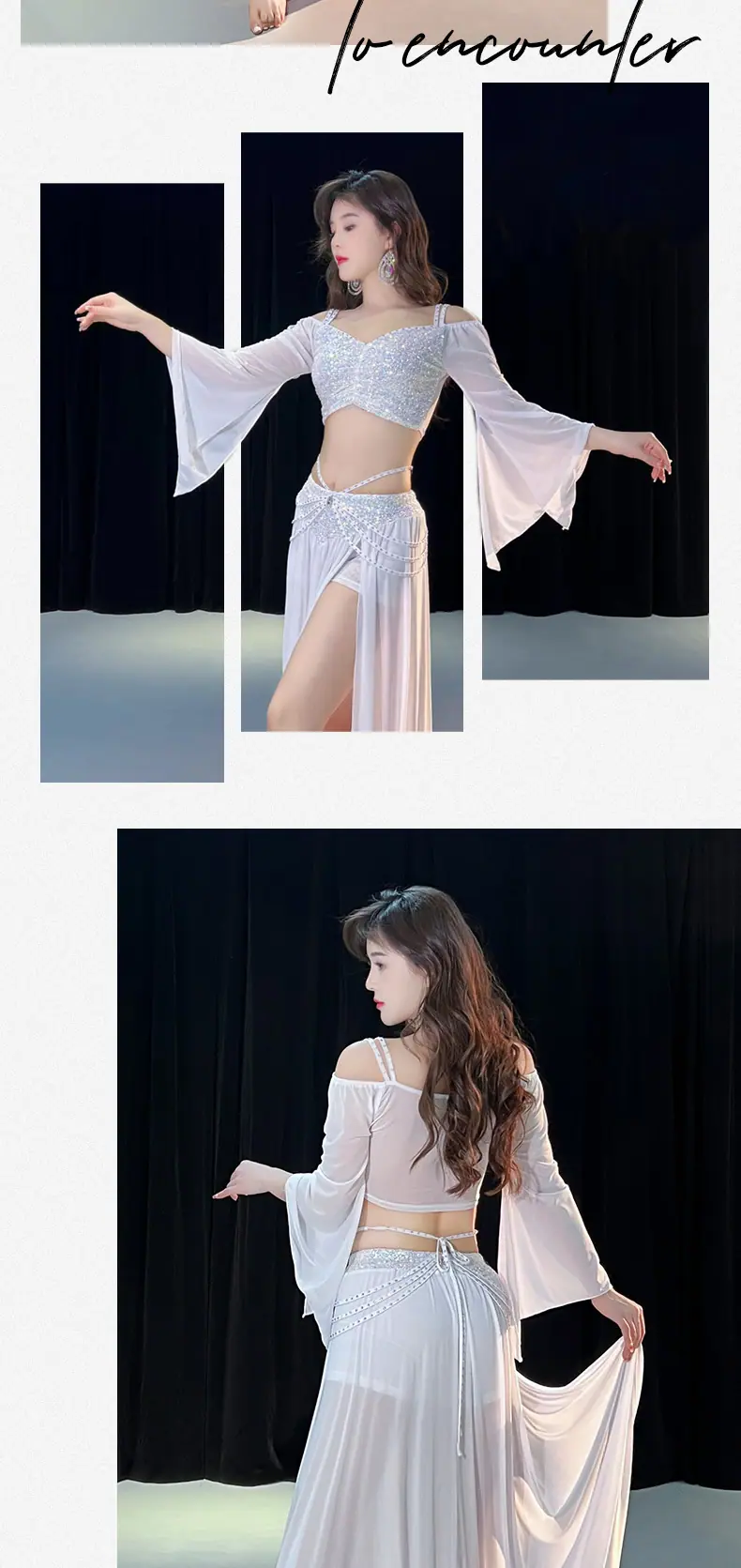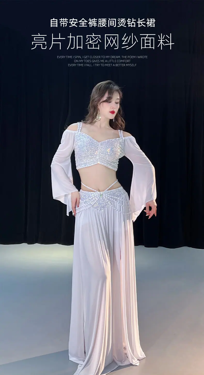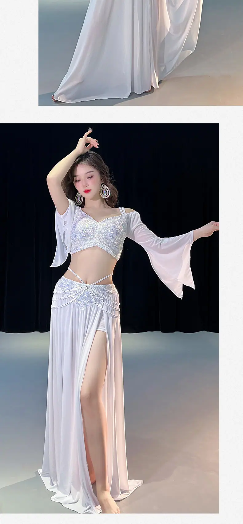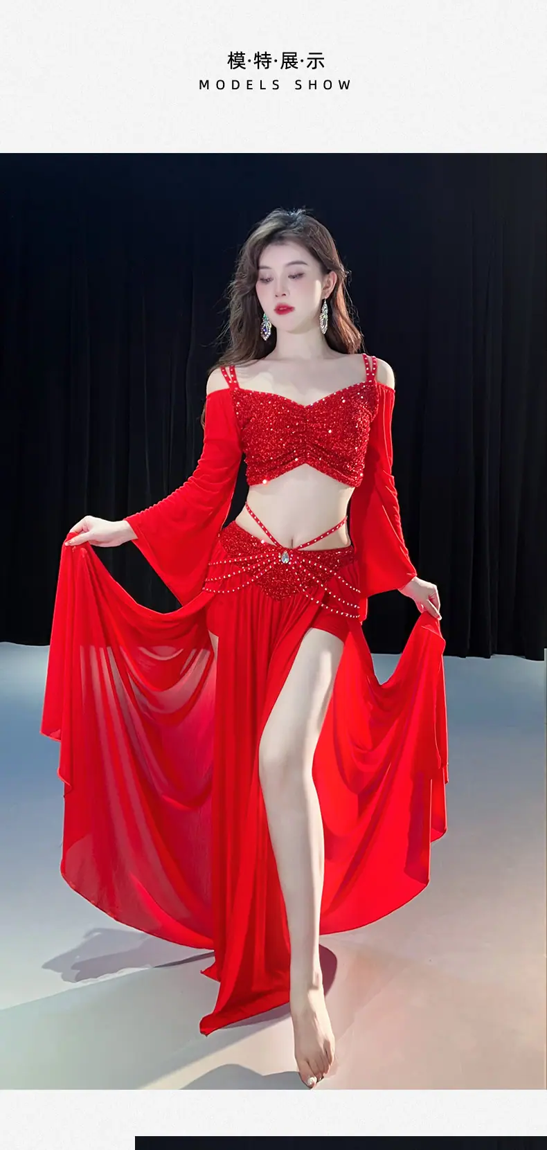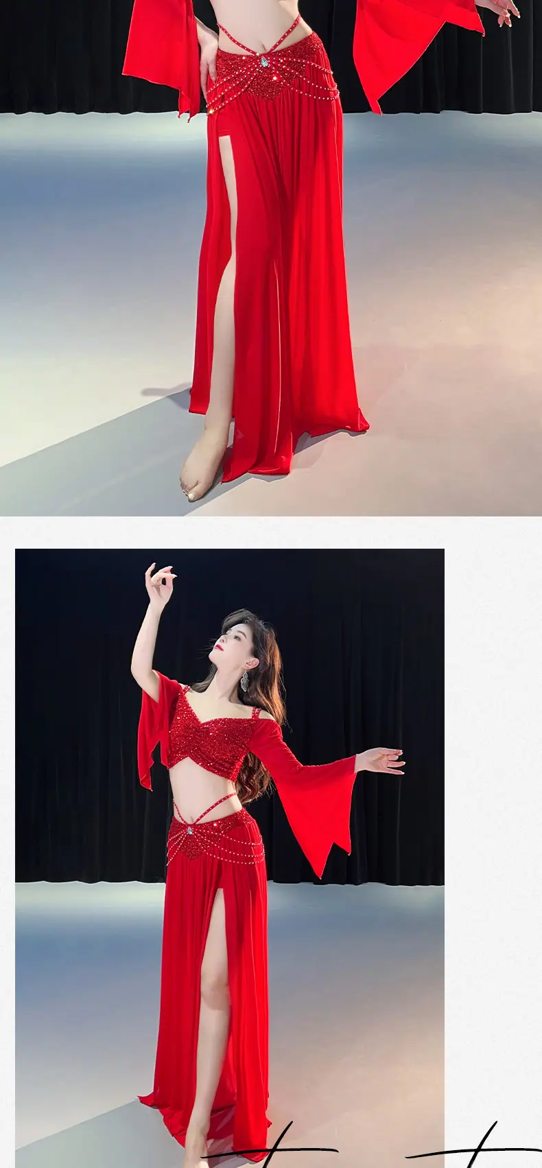 Traje de dança do ventre com design de nicho original para dançarinos, lantejoulas, malha de primavera, roupas de aula de treinamento, terno 5090