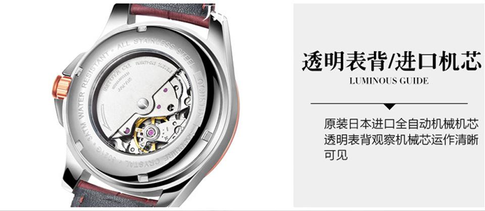 Relógio mecânico automático masculino de couro OCHSTIN, produto genuíno suíço, fabricante e agente de relógios mecânicos luminosos