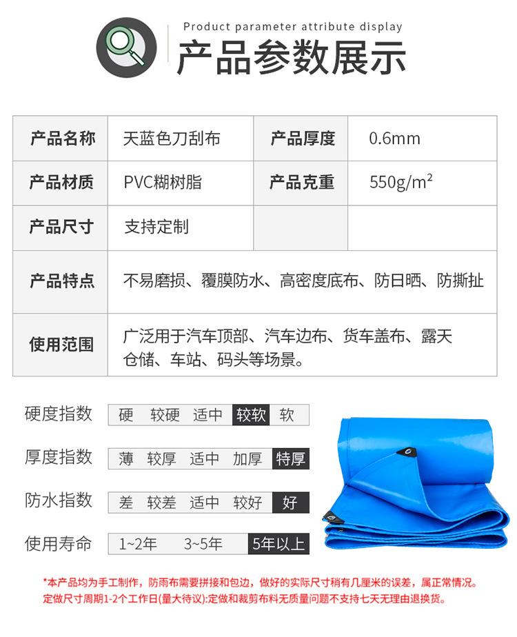 Atacado de fábrica protetor solar à prova de chuva pano à prova d'água pano à prova de chuva engrossado lona de caminhão azul faca raspador pano