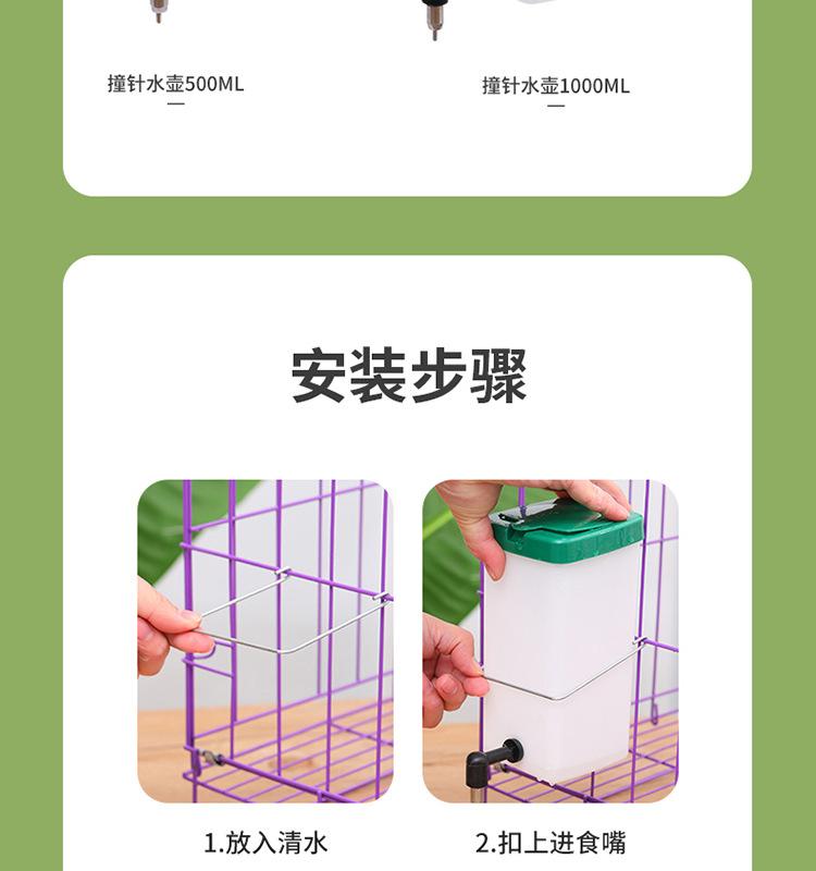 Fonte de água para coelho atacado transfronteiriça papagaio coelho suprimentos para animais de estimação grande capacidade pendurado pino de disparo chaleira automática para animais de estimação