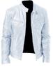 2022 Comércio Exterior Novo Masculino Gola Slim Fit Jaqueta de Couro Bolso com Zíper Decorativo pu Jaqueta de Couro Jaqueta Masculina de Bicicleta