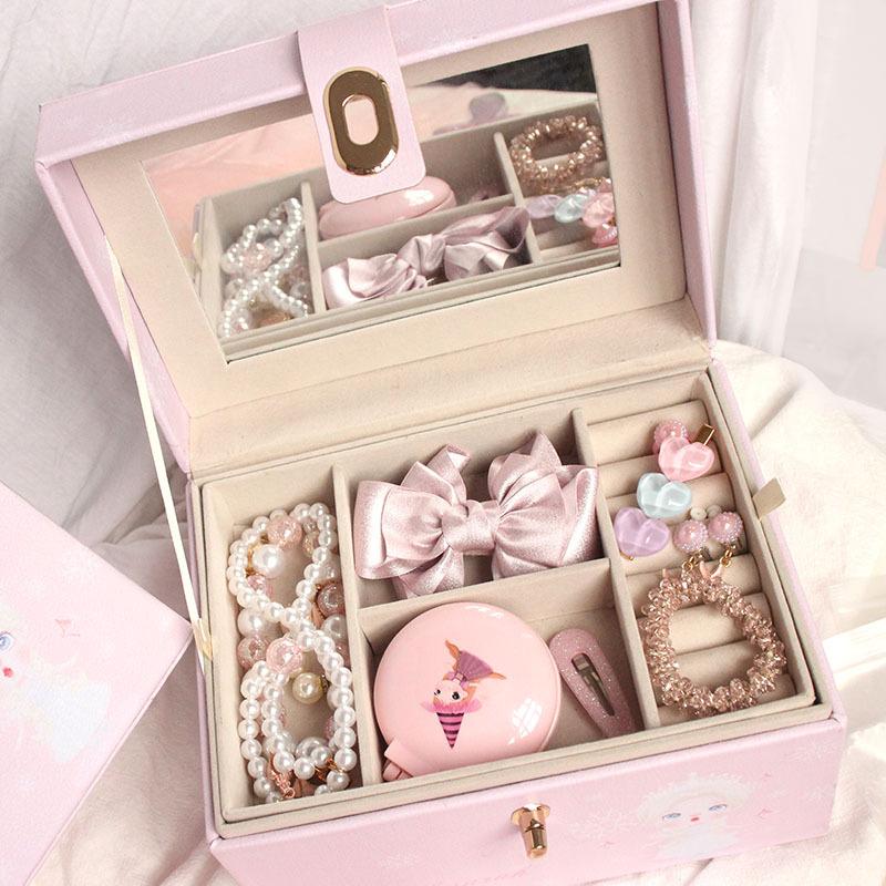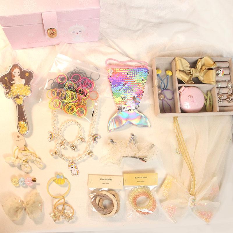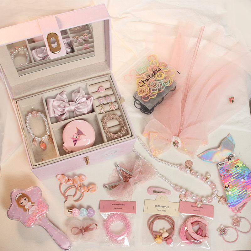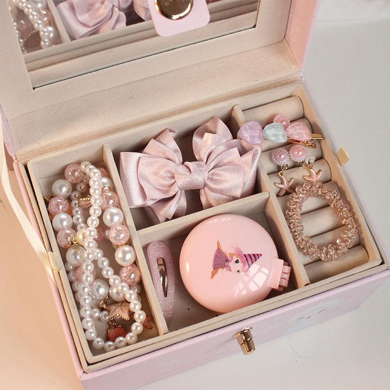 Caixa de jóias para crianças Acessórios para o cabelo da princesa das meninas Caixa de presente Grampo de cabelo do bebê Manchete Conjunto de jóias para meninas Caixa de armazenamento