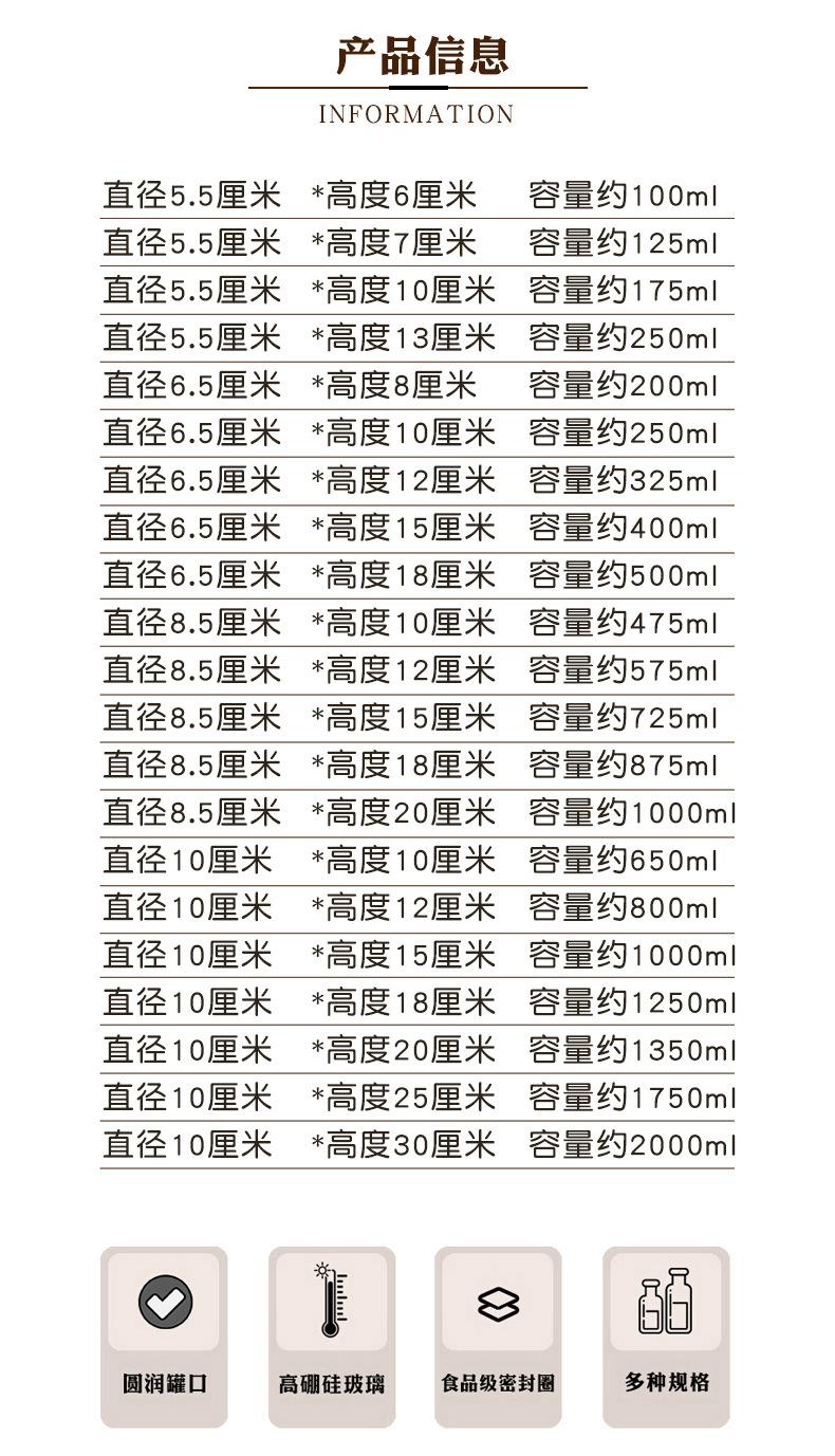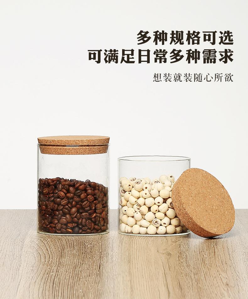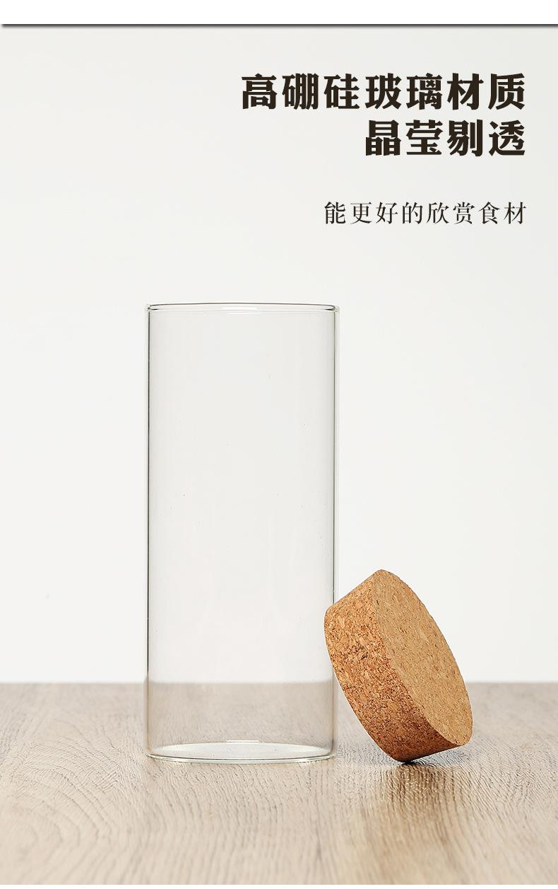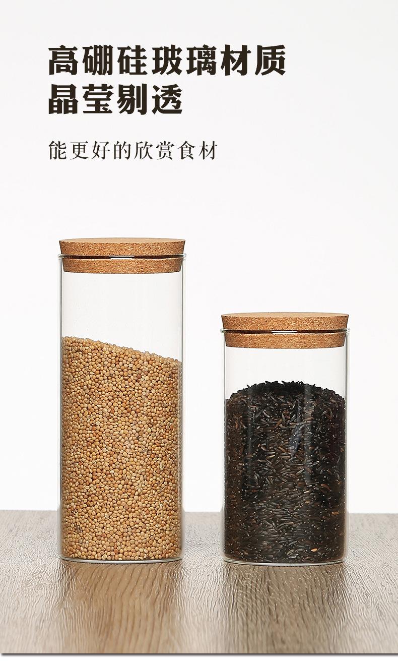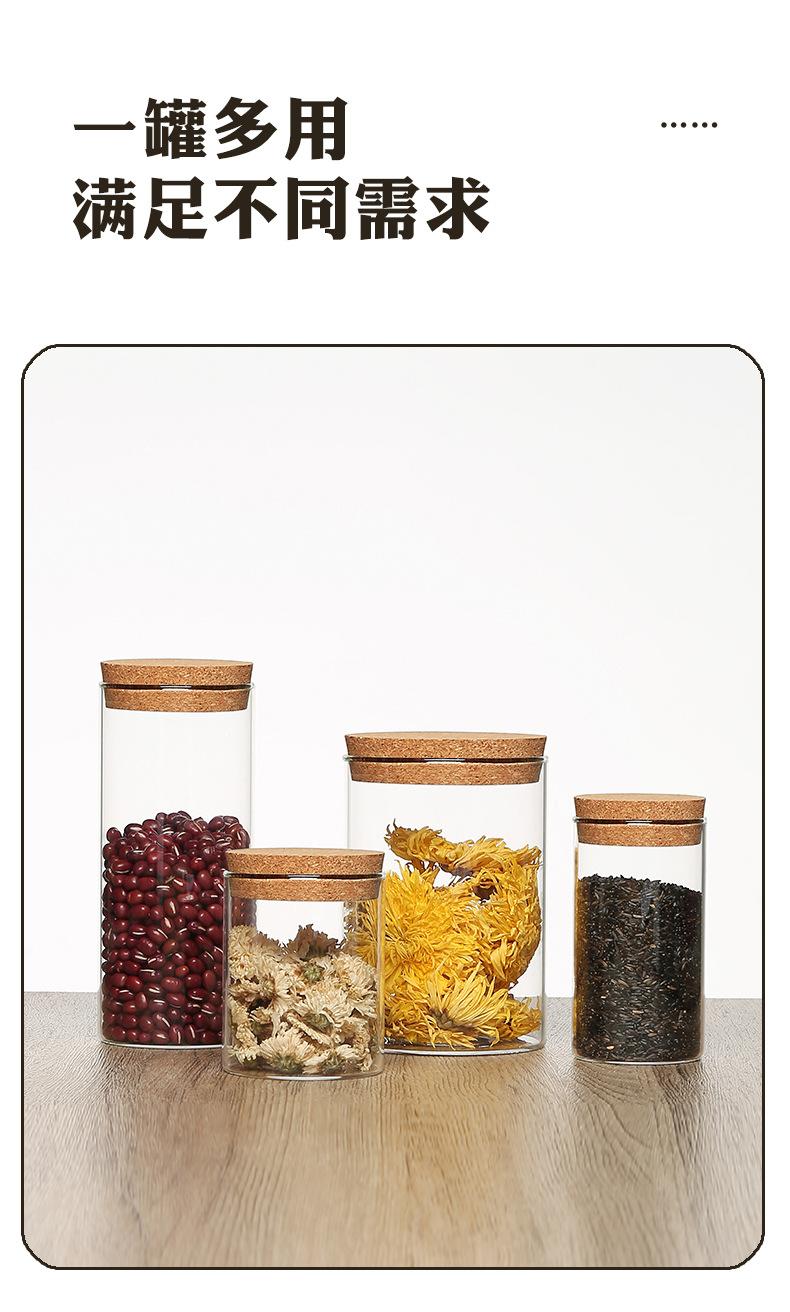 Pote de Armazenamento Redondo de Vidro Borossilicato Alto Garrafa de Armazenamento Cozinha Doce Alimento Tempero Tampa de Cortiça Pote de Armazenamento Selo