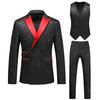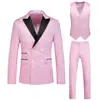 Terno Masculino Terno Casual Vestido de Negócios Terno Listrado Slim-fit Trespassado Três Peças Noivo Vestido de Noiva Roupas Masculinas