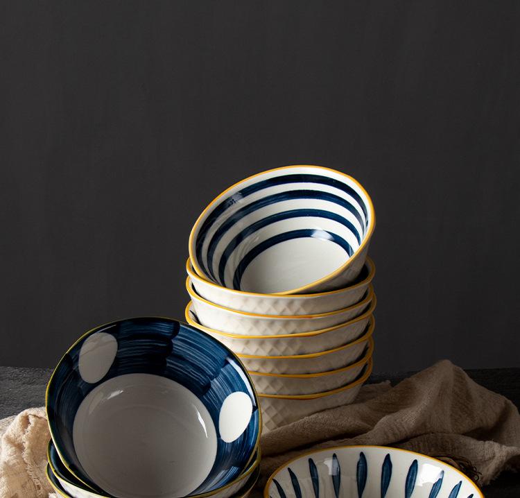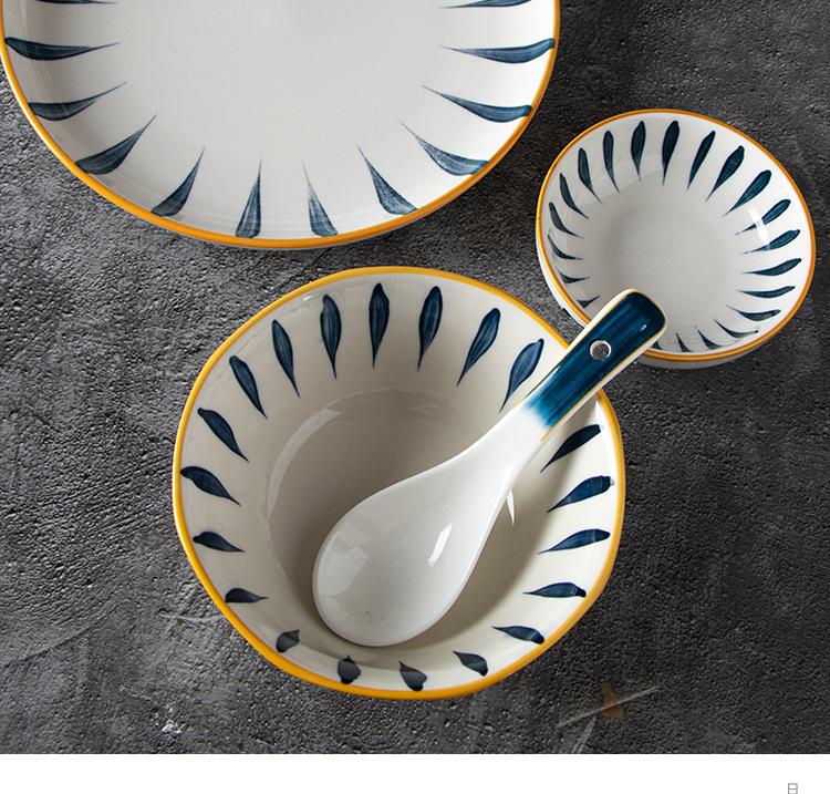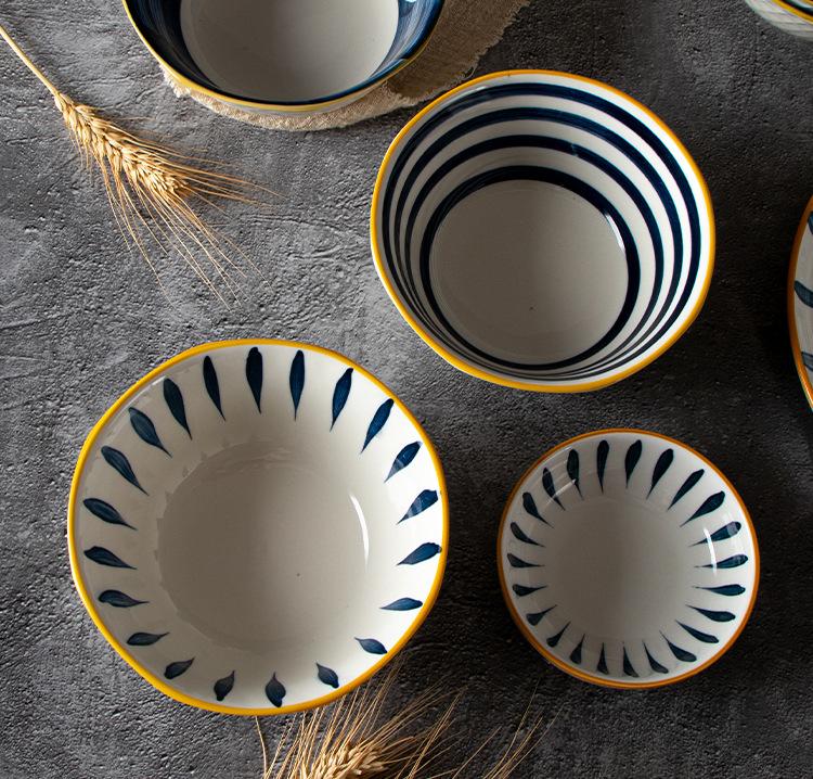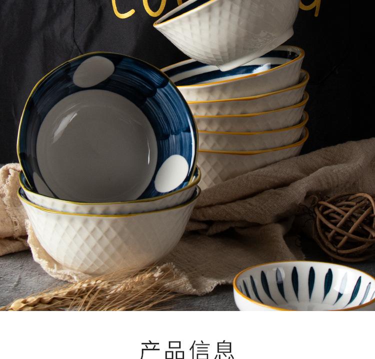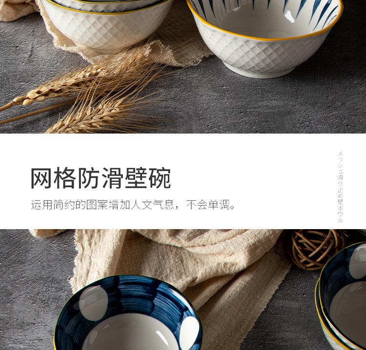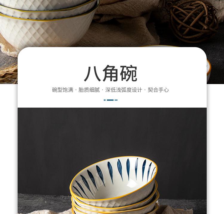 Tigela de arroz de cerâmica pintada à mão em estilo japonês para uso doméstico, tigela de arroz de 5 polegadas, tigela pequena octogonal, utensílios de mesa de jantar criativos personalizados