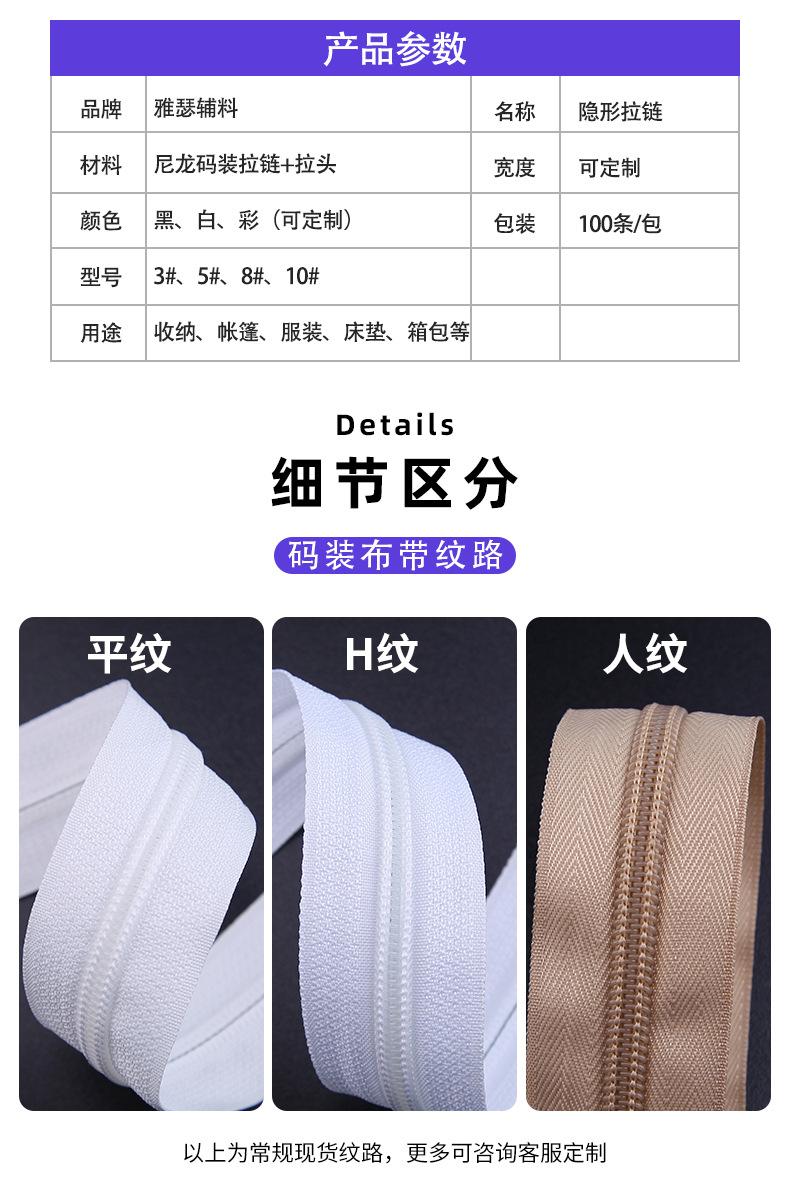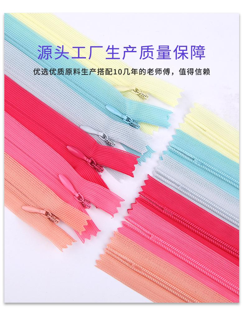 Não. 3 nylon zíper invisível fábrica têxtil para casa almofada travesseiro vestido borda do laço cor cauda fechada zíper atacado
