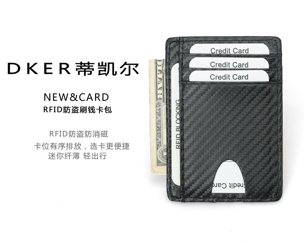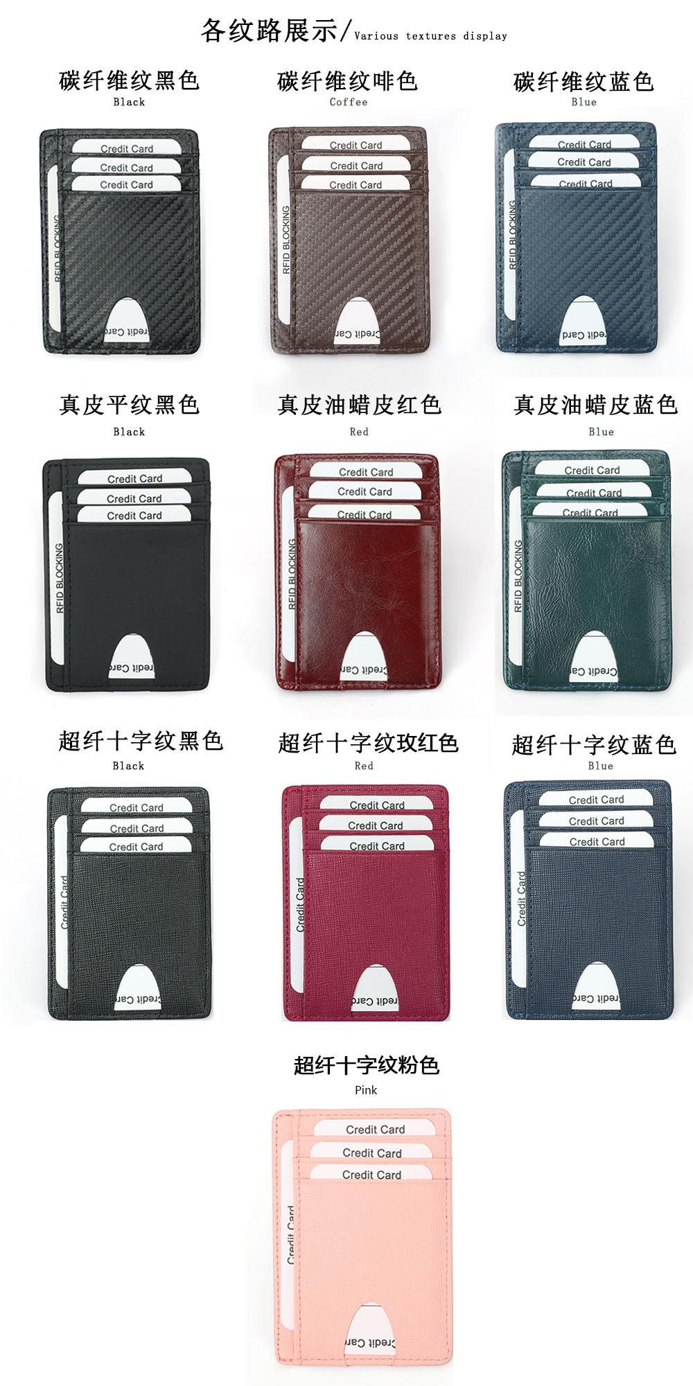 Nuevo Tarjetero Transfronterizo para Hombre de Piel de Vacuno de Primera Capa, Tarjetero con Patrón de Fibra de Carbono, RFID, Cuero Genuino, Tarjetero Pequeño para Mujer