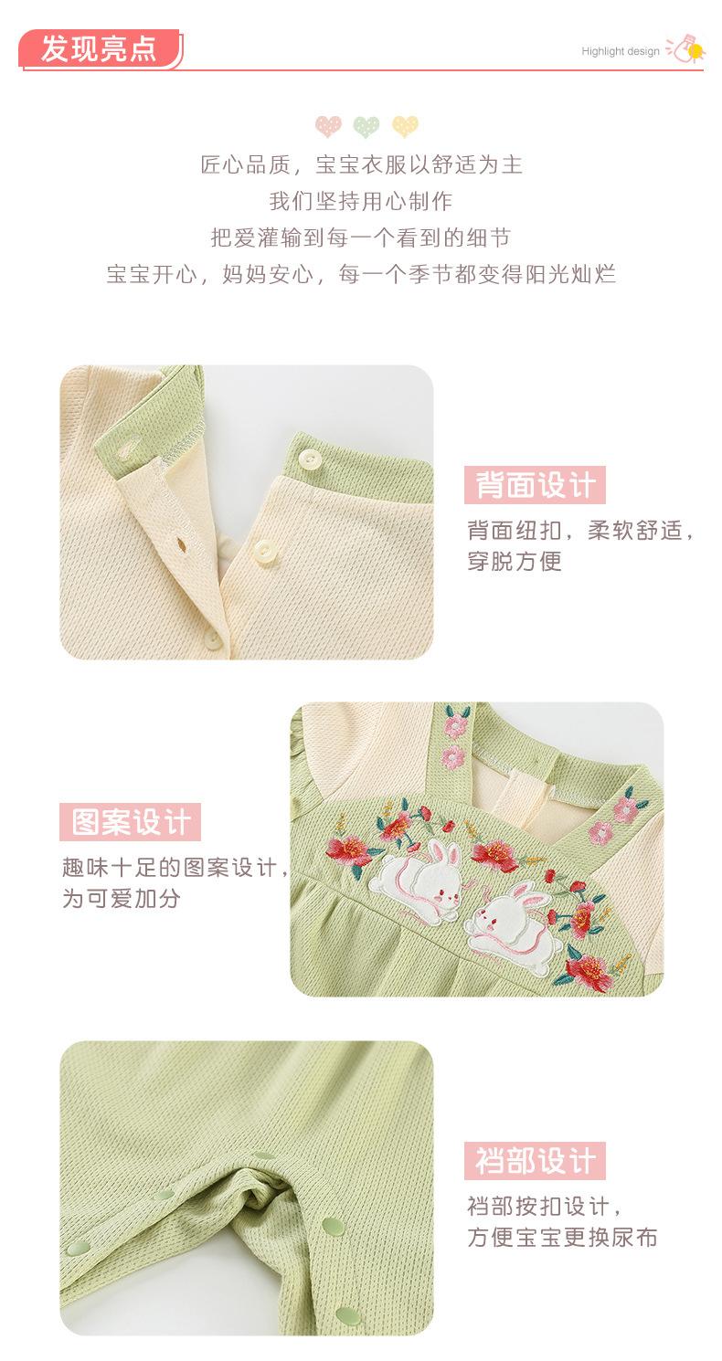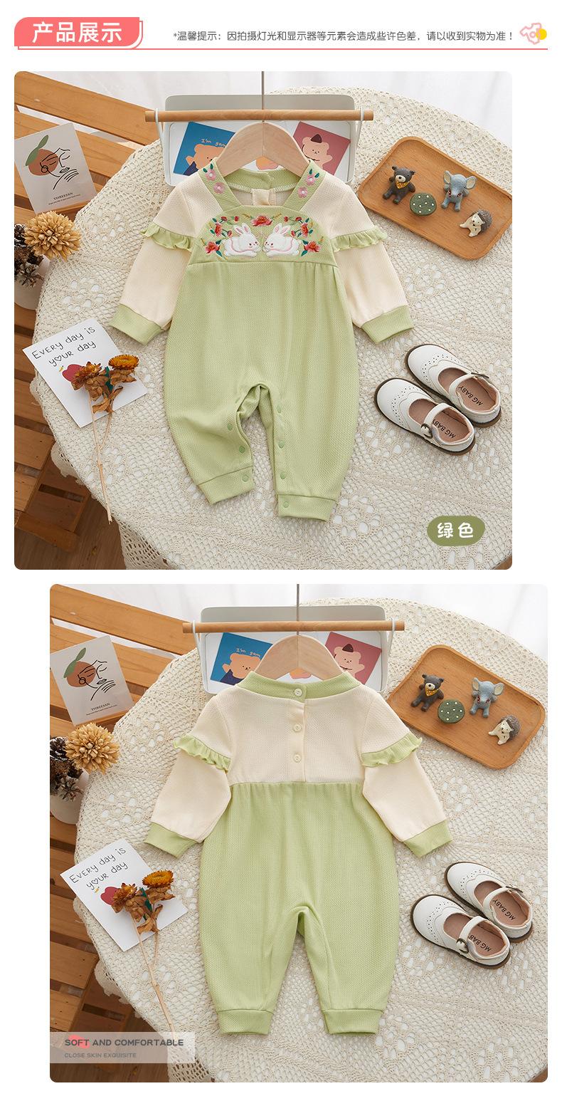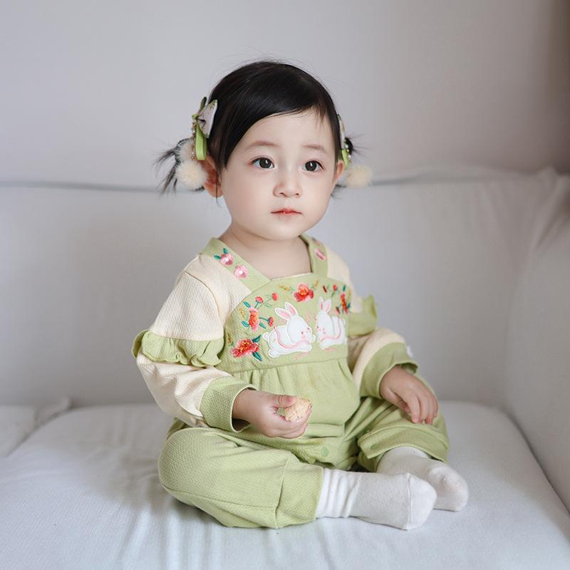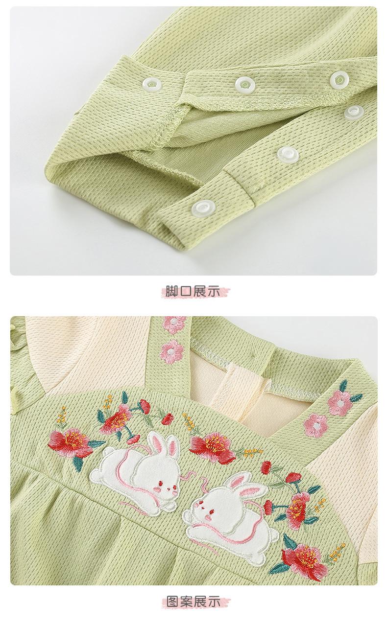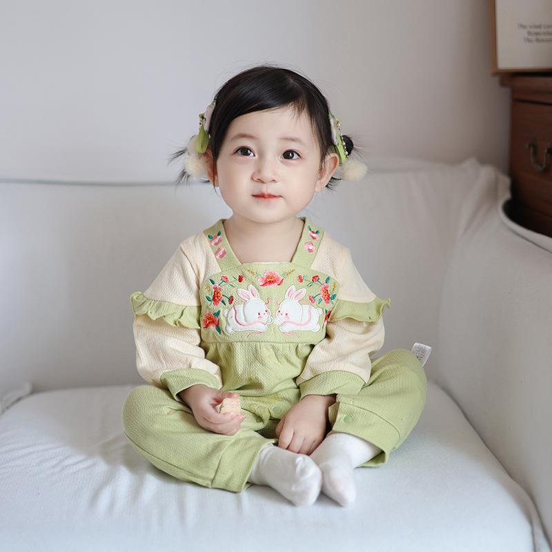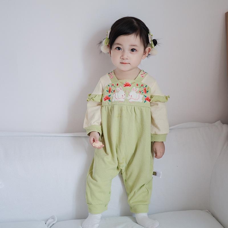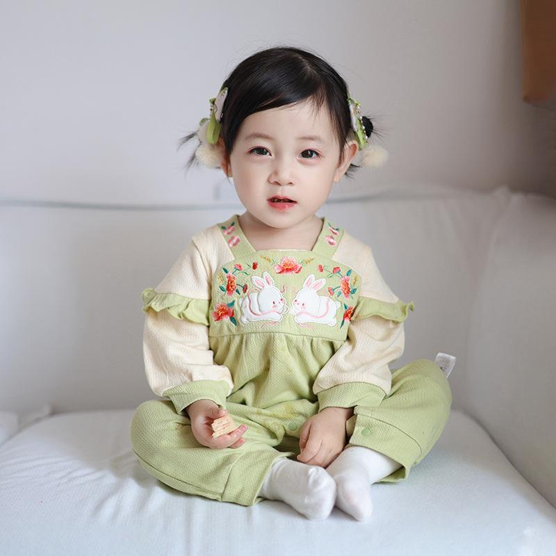 Roupas de Outono para Bebês Estilo Nacional Roupas de Bebê Bordadas Roupas de Bebê Coelho Primavera e Outono Roupas para Recém-nascidos Macacão de Bebê