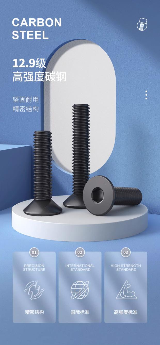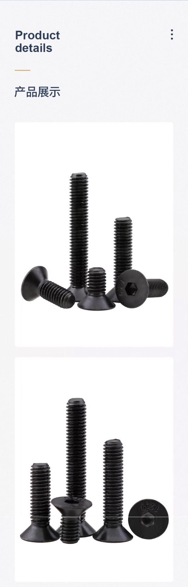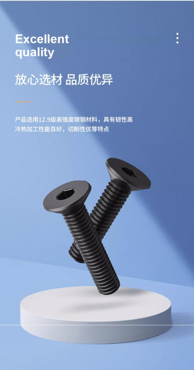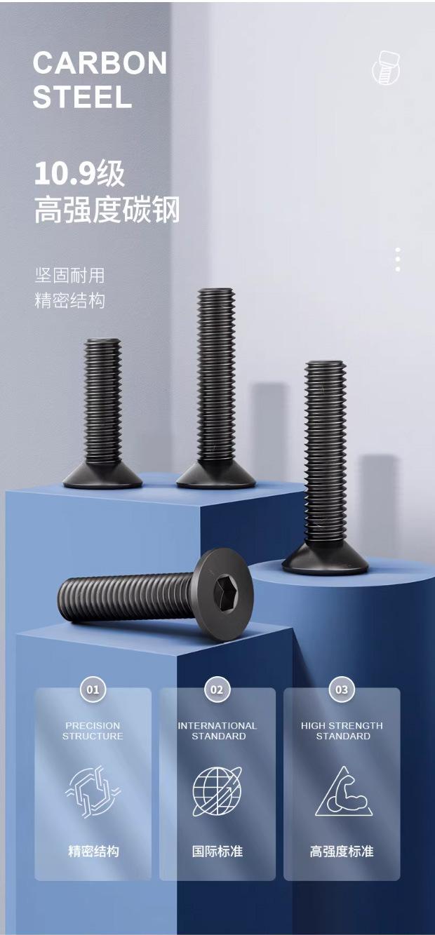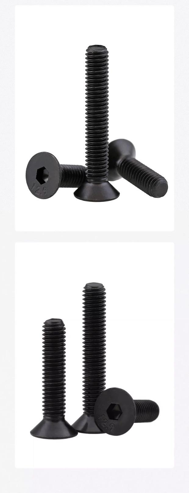 12,9 soquete de cabeça escareada de grande resistência do hexágono da categoria 10,9 niquelado preto folheado a níquel da categoria escareou o parafuso de parafuso do soquete do soquete do hexágono M4