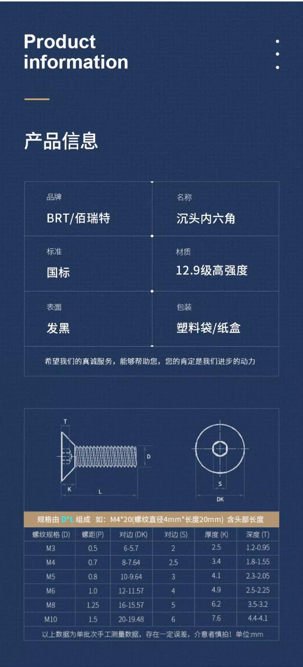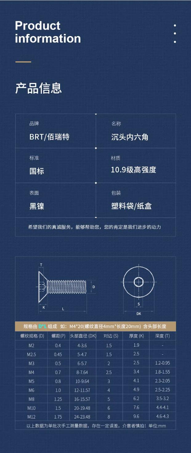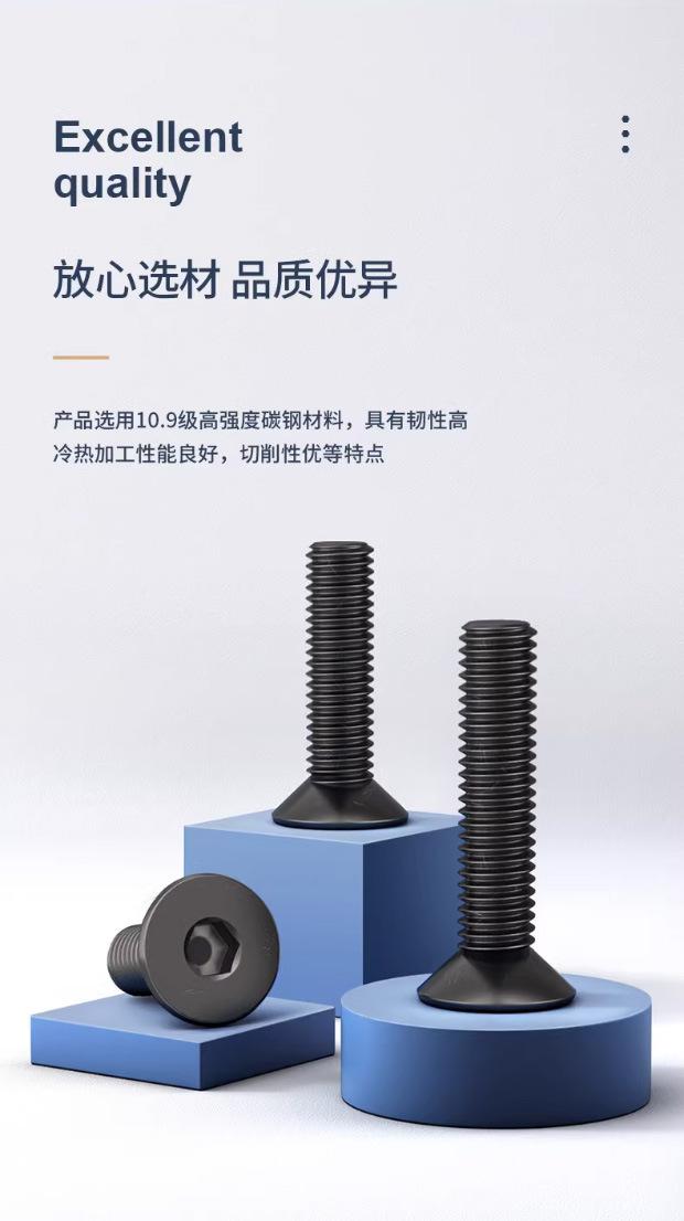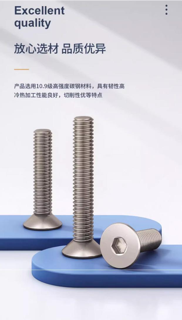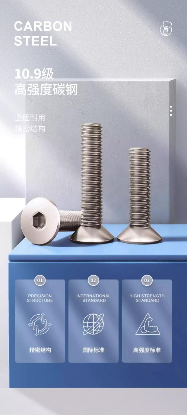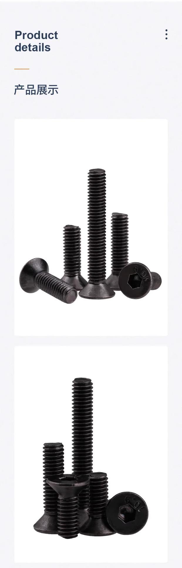 12,9 soquete de cabeça escareada de grande resistência do hexágono da categoria 10,9 niquelado preto folheado a níquel da categoria escareou o parafuso de parafuso do soquete do soquete do hexágono M4