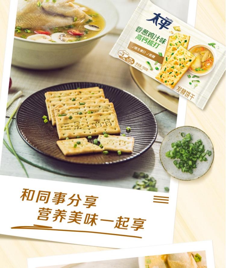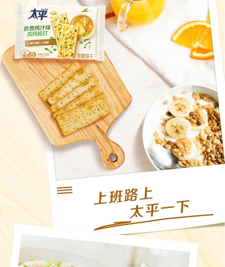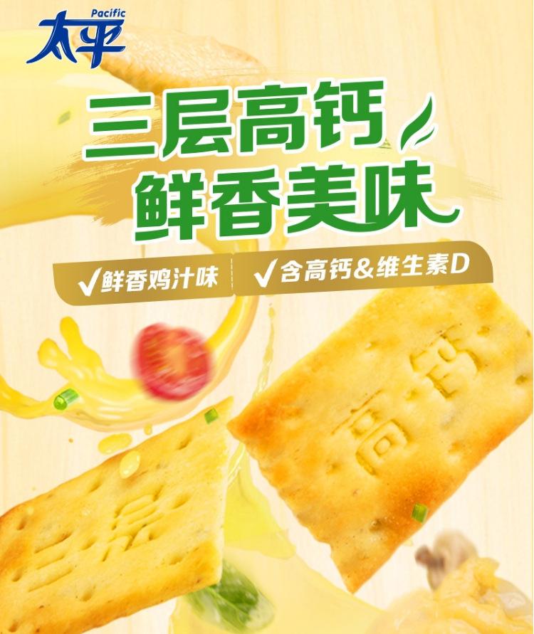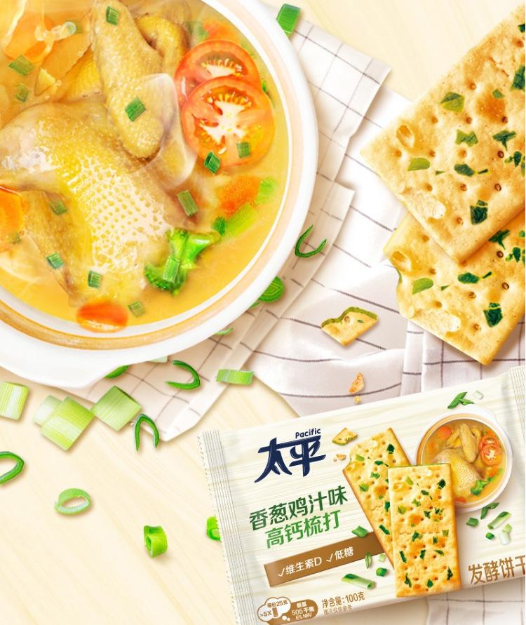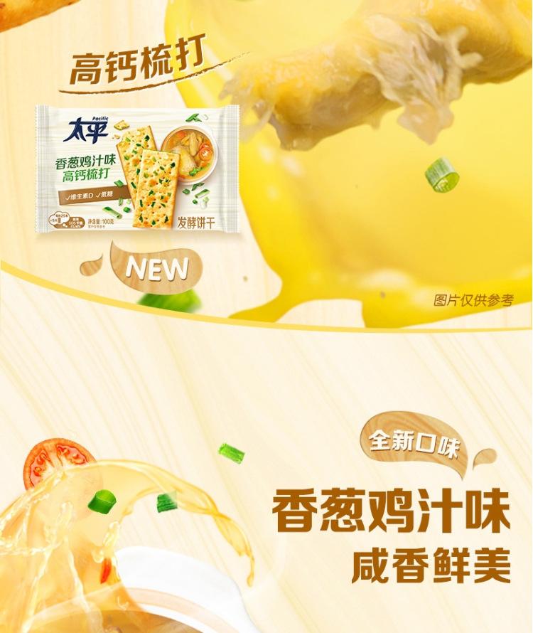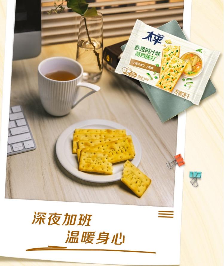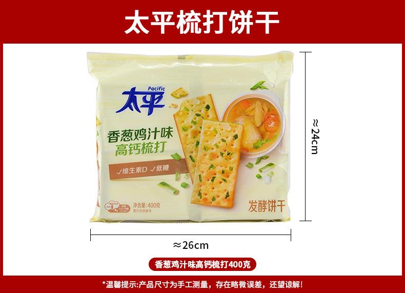 Biscoitos de Soda Taiping Três Camadas Alto Cálcio 400g, Sabor Cebolinha e Frango, Lanche de Café da Manhã com Baixo Açúcar