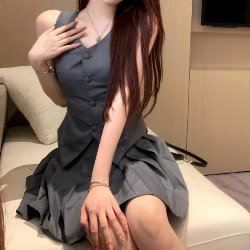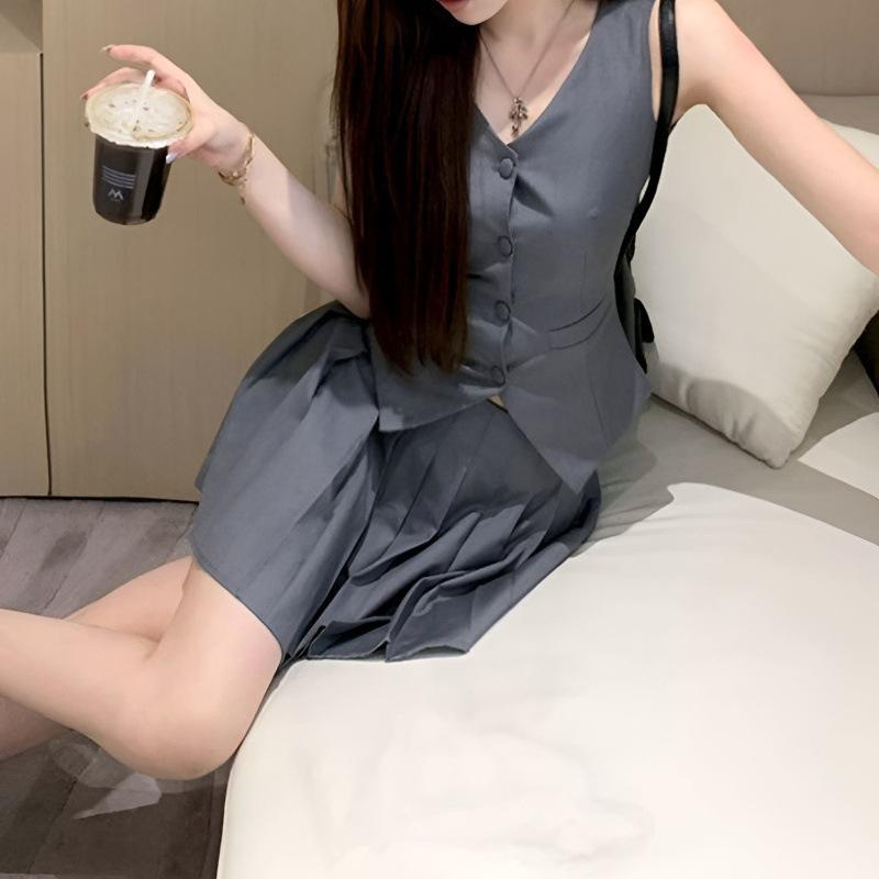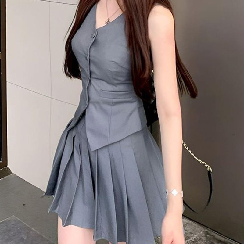 Compre Conjunto de Duas Peças Temperamental, Atrevido e Sofisticado para Mulheres, Terno Sem Mangas, Colete + Saia Plissada no atacado no Joom.pro
