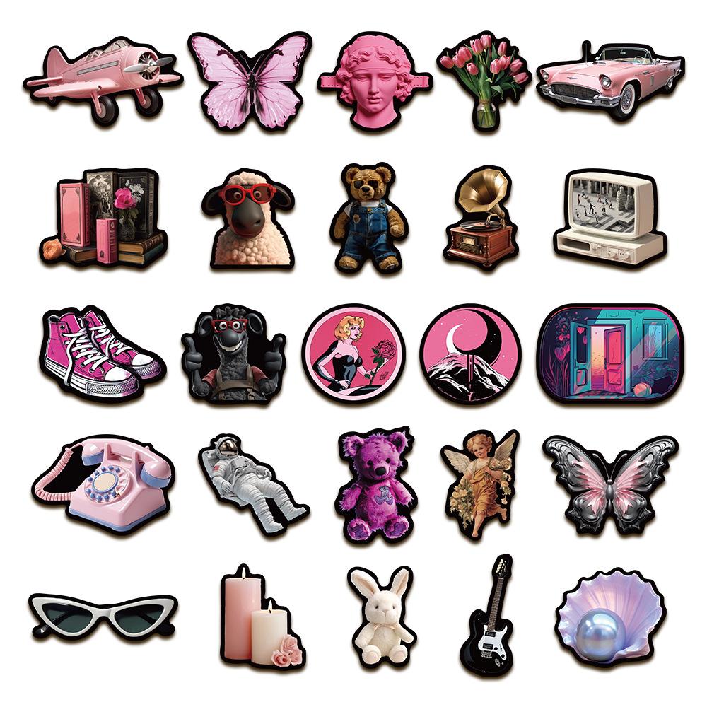 50 peças novo rosa Black Series adesivos laptop notebook celular caso bagagem decoração adesivos à prova d'água