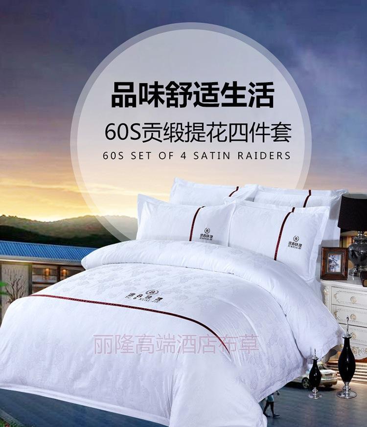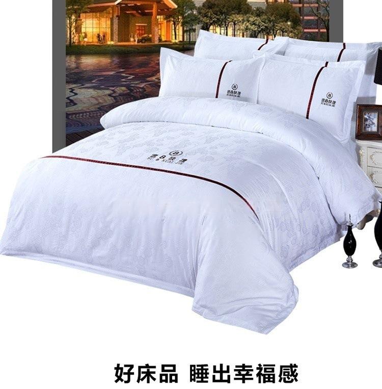 Hotel B & B Atacado Roupa de cama Algodão Espessado Branco Jacquard Capa de edredom Lençol Conjunto de quatro peças