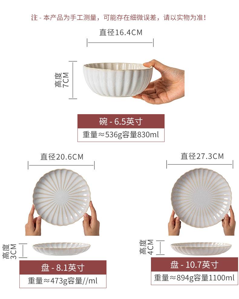 Fengluomu-salad bowl milk white 6.5inch (slightly imperfect), Fengluomu-shallow plate white 8.1inch (slightly ...