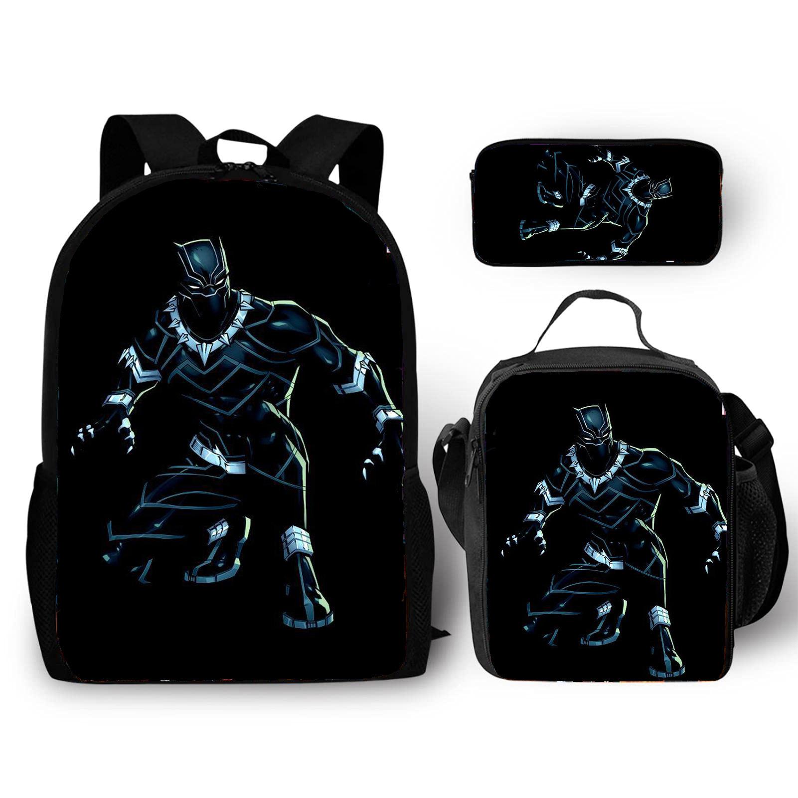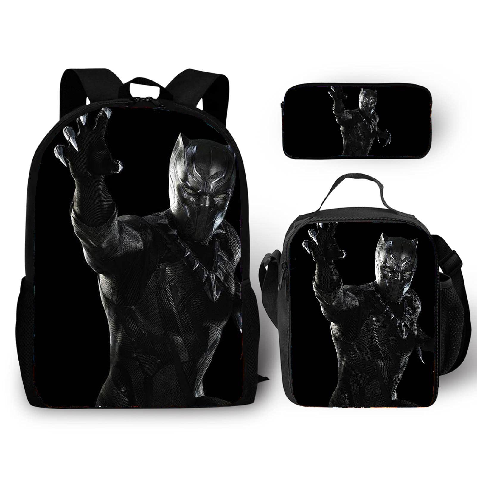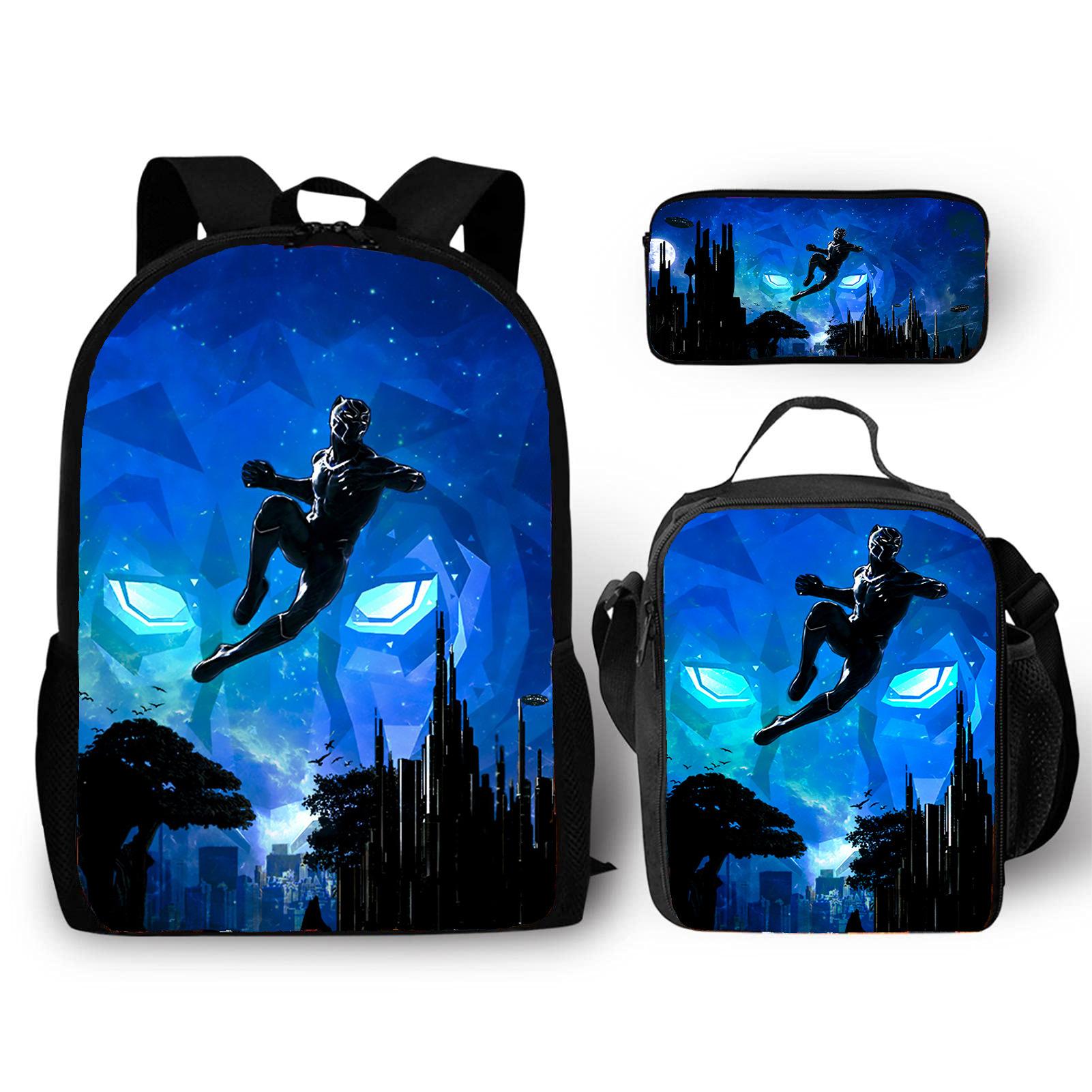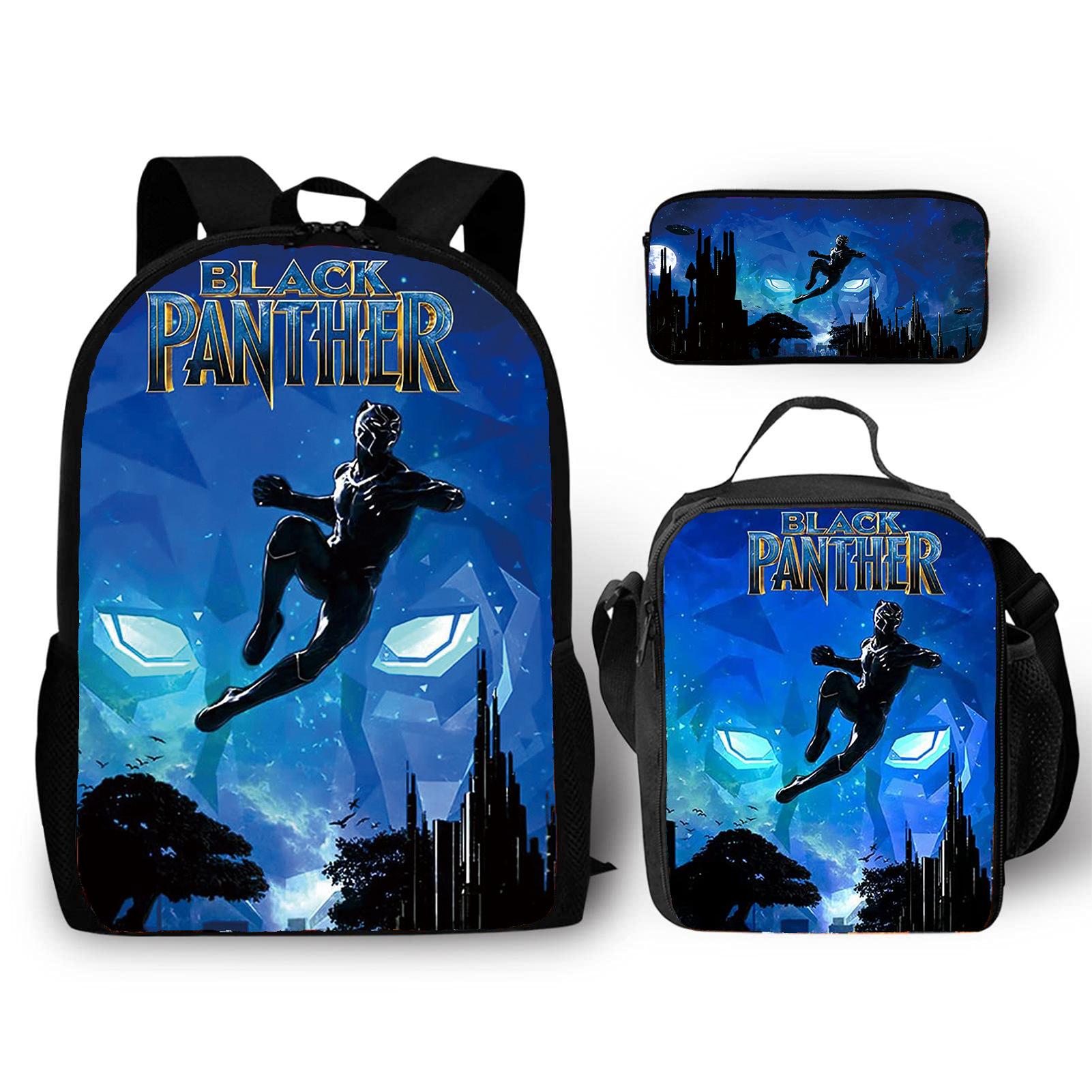 Mochila transfronteiriça Nova Pantera Negra Pantera Marvel Mochila de Estudante de Escola Primária Mochila de Três Peças Mochila Lápis Bolsa