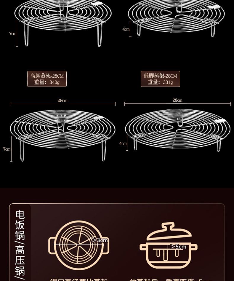 Food grade 304 steel steamer (16cm high 4cm), Food grade 304 steel steamer (18cm high 4cm), Food grade 304 ste...