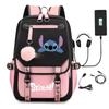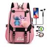 Star Baby Stitch Stitch Stitch USB Recarregável Mochila Escolar Masculina e Feminina Mochila de Estudante