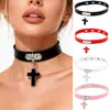 Couro PU Ecológico Moda Europeia e Americana Estilo de Rua Colar Gótico Punk Corrente Clavicular Simples Pingente de Cruz Choker