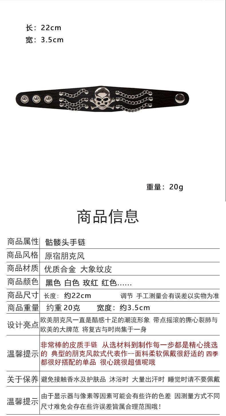 Transfronteiriço europeu e americano estilo punk caveira pulseira personalidade tendência rebite pulseira rock boate pulseira saída de fábrica