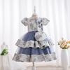 Novo Conjunto Europeu e Americano Vestido Infantil Vestido de Princesa Bordado em Ouro Vestido Feminino de Dama de Honra Vestido de Aniversário Vestido Infantil