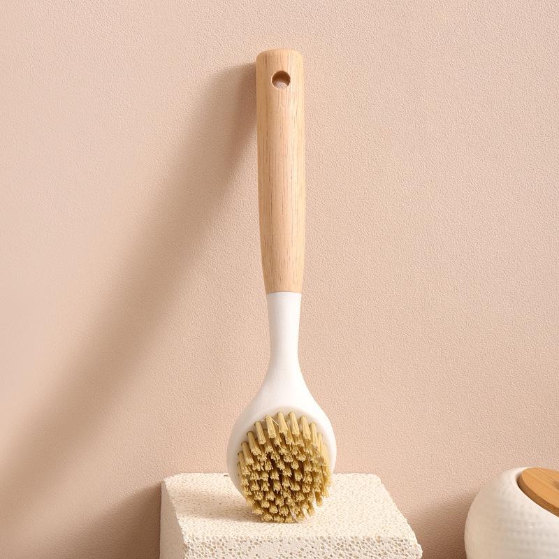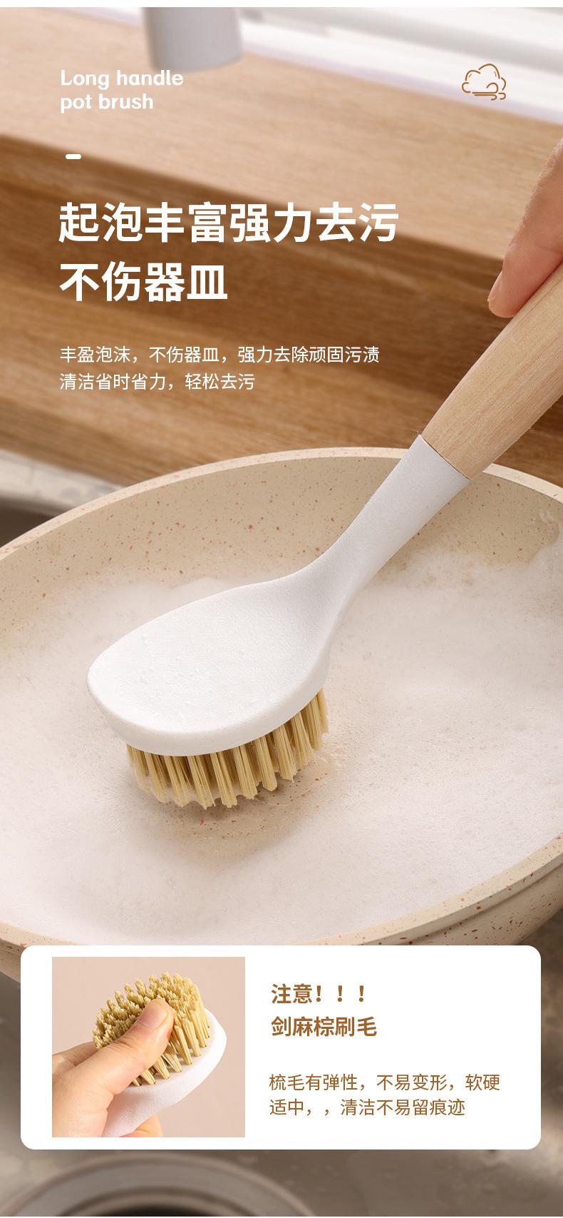Escova de panela de cabo de madeira Escova de limpeza de cozinha doméstica Escova especial Multifuncional Panela de escova de plástico sem óleo Tigela de lavagem por atacado